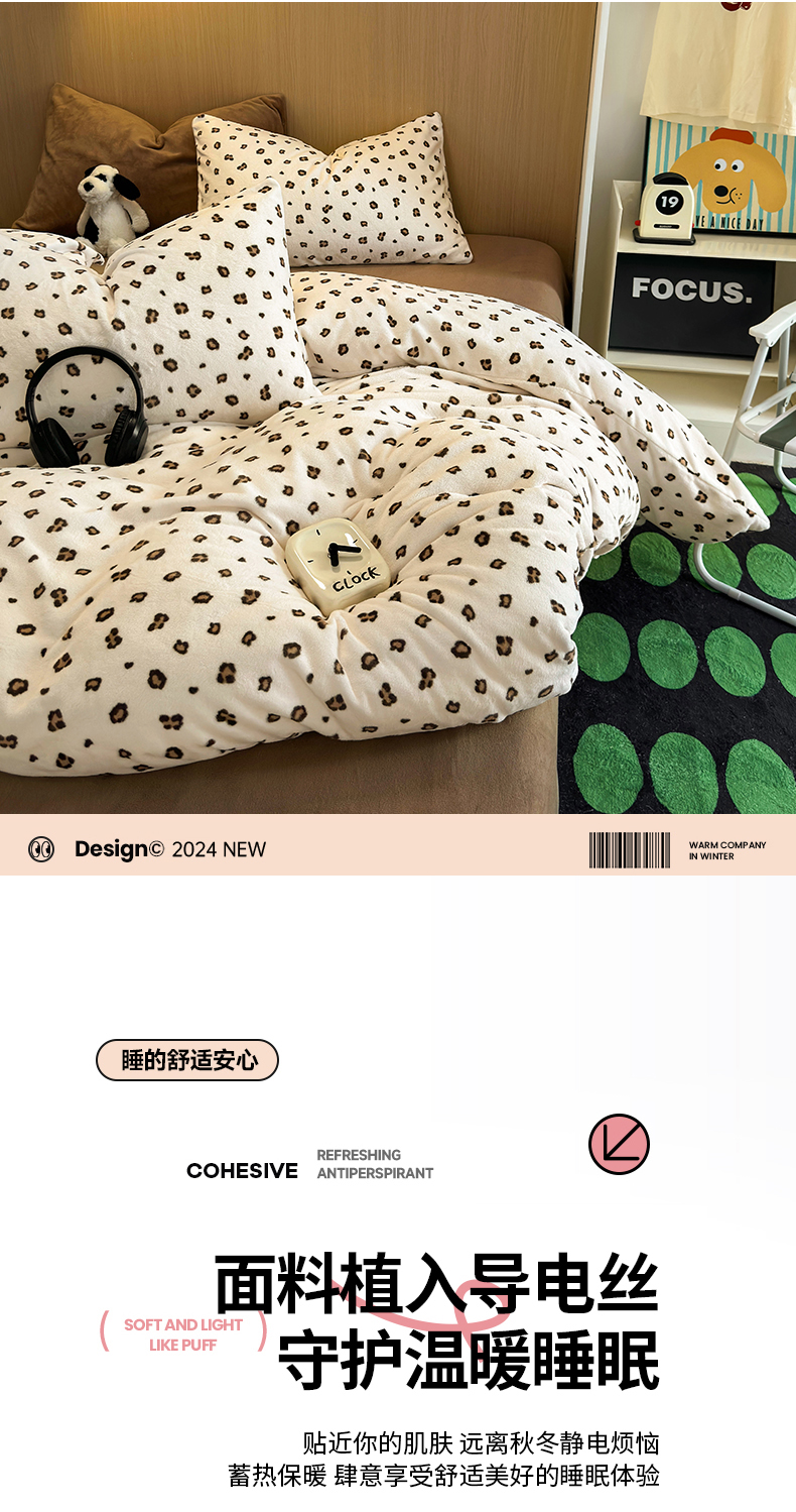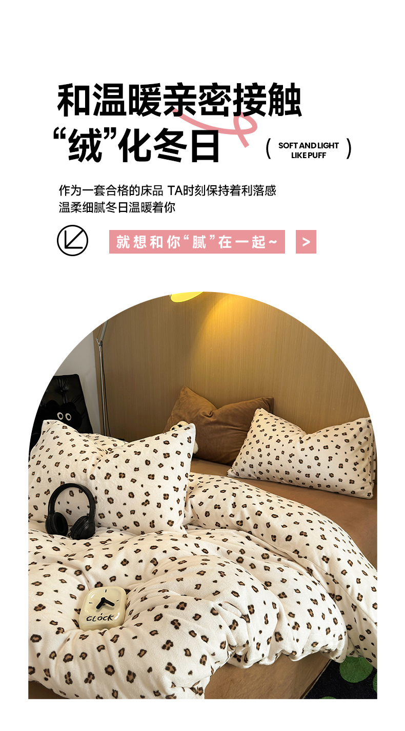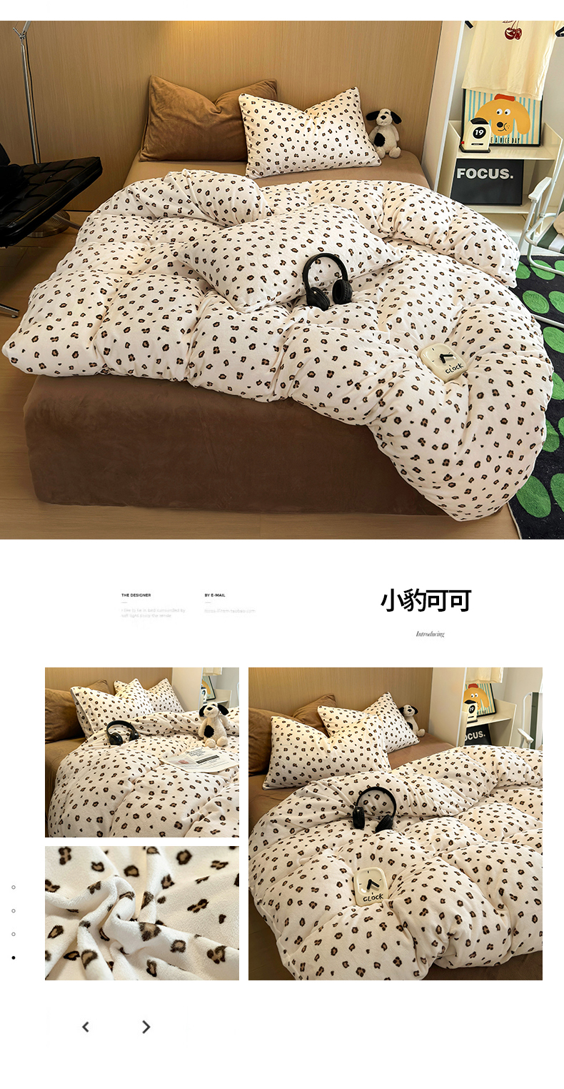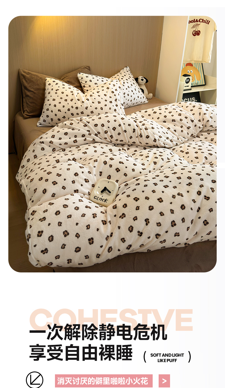 商品名称:春光里 2024新款牛奶绒印花混搭四件套 小豹可可