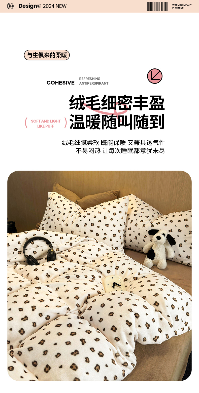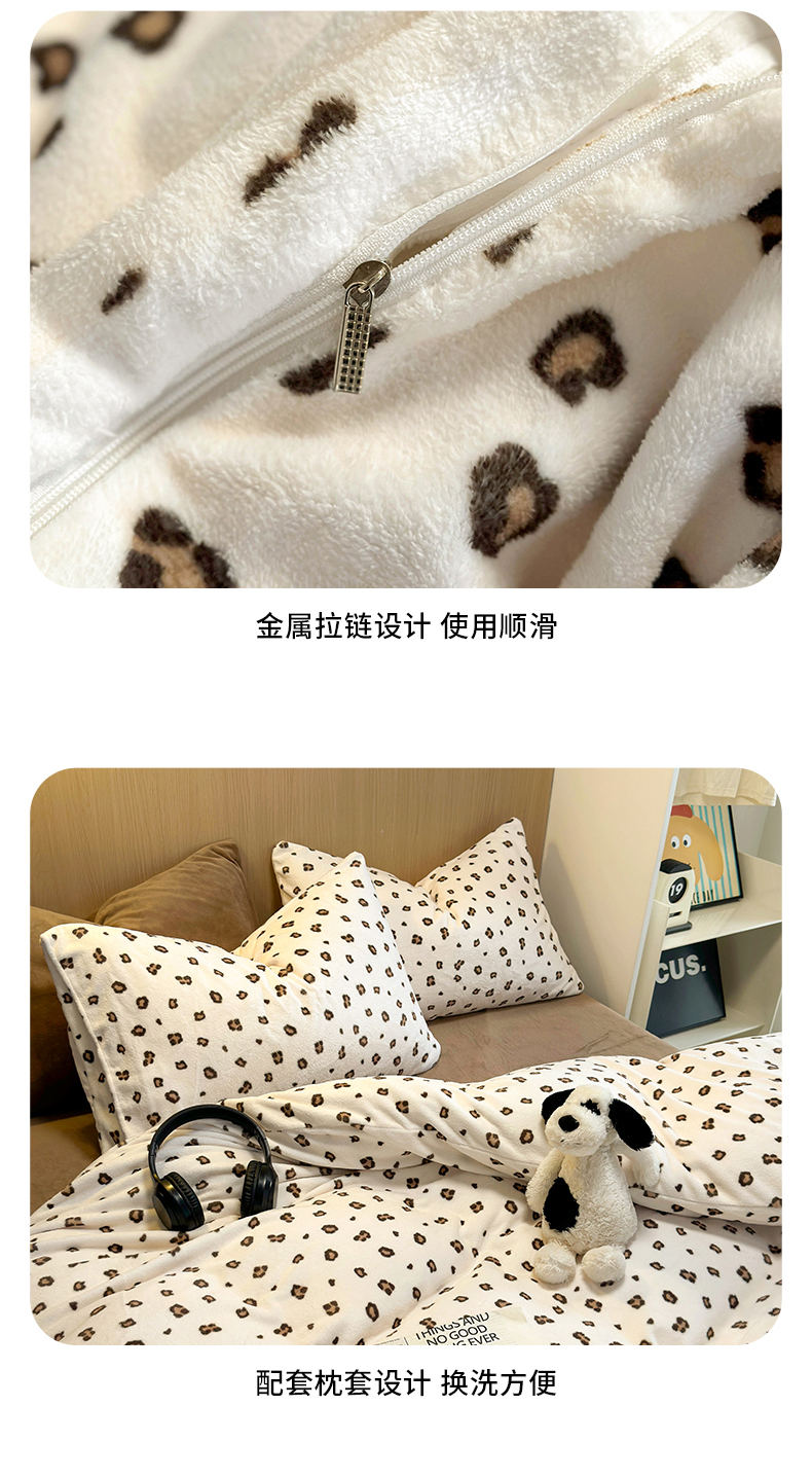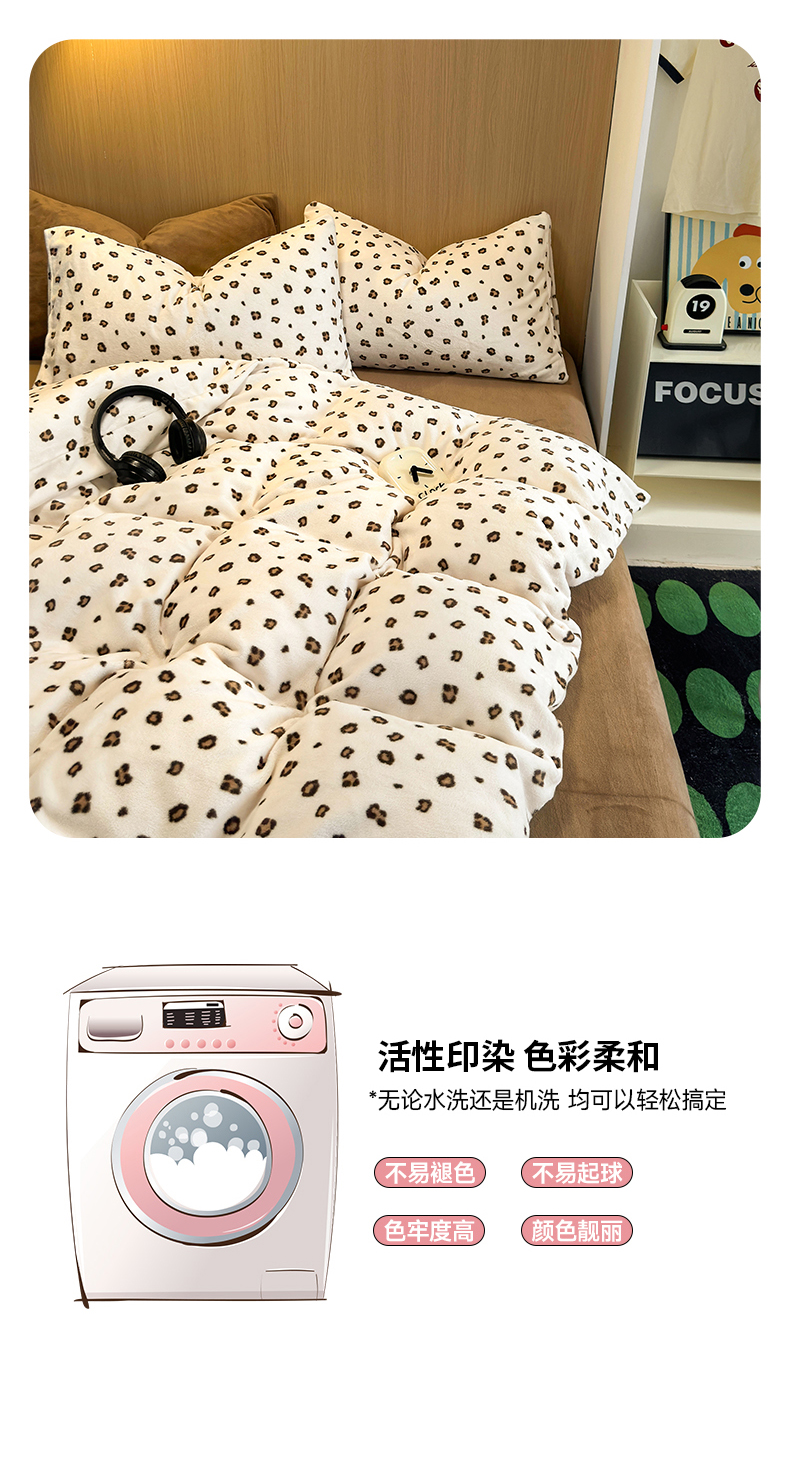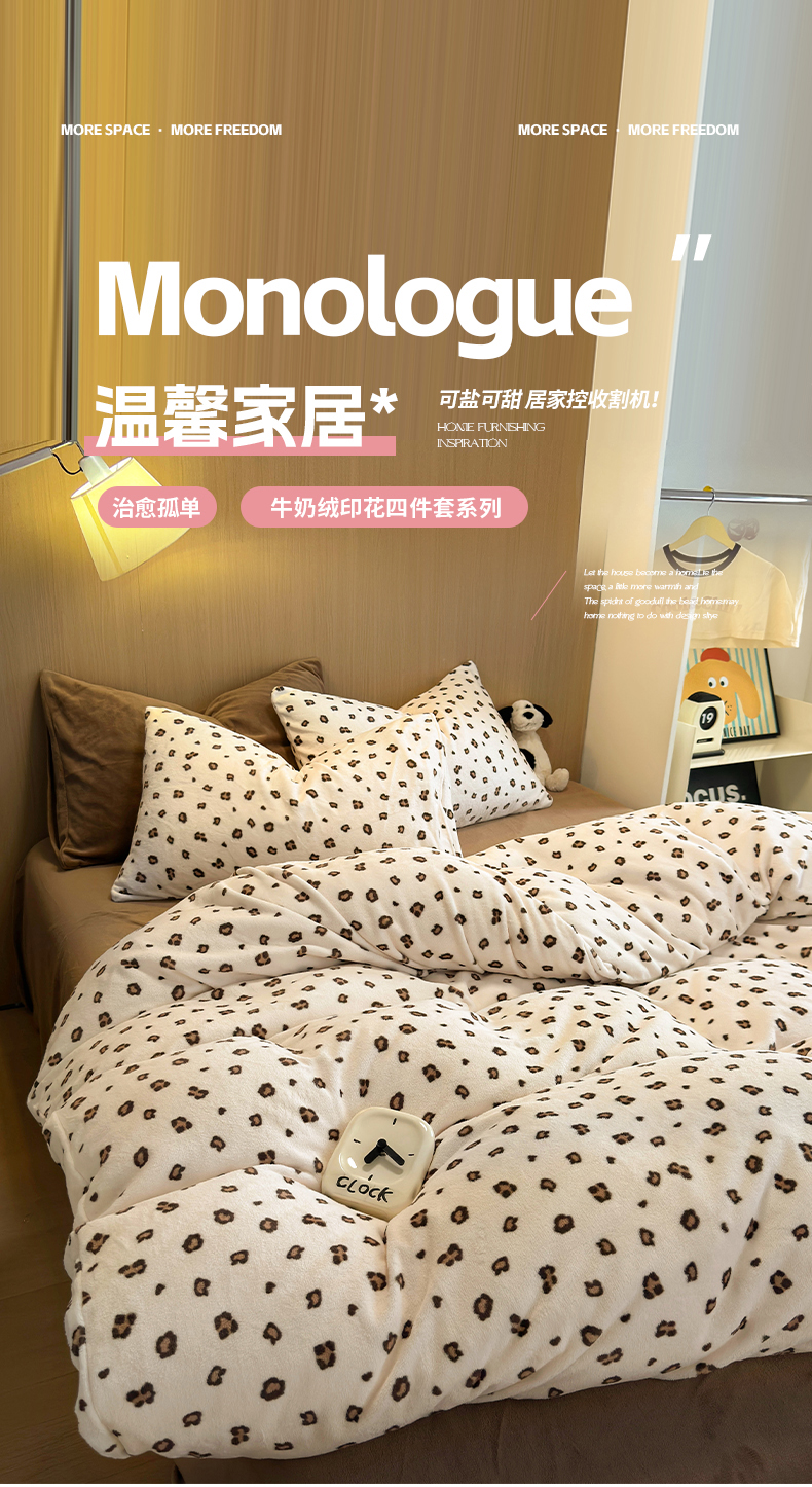 商品名称:春光里 2024新款牛奶绒印花混搭四件套 小豹可可