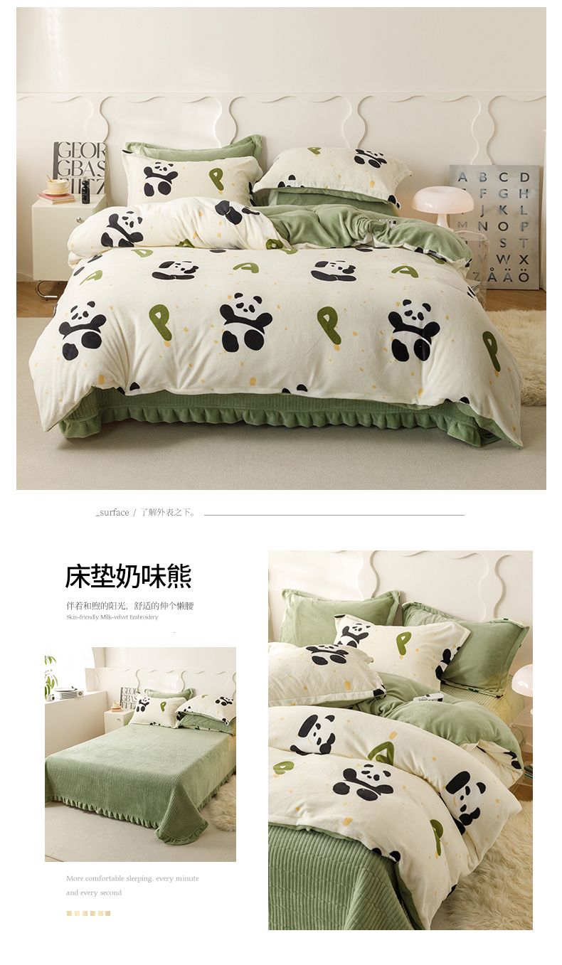 当前位置: 91家纺网 > 商品网购 > 床品套件 > 四件套 > 牛奶绒四件套 > 富瑞阁 2024爆款牛奶绒花边床盖四件套多件套复古中式法式美拉德 呆萌熊猫