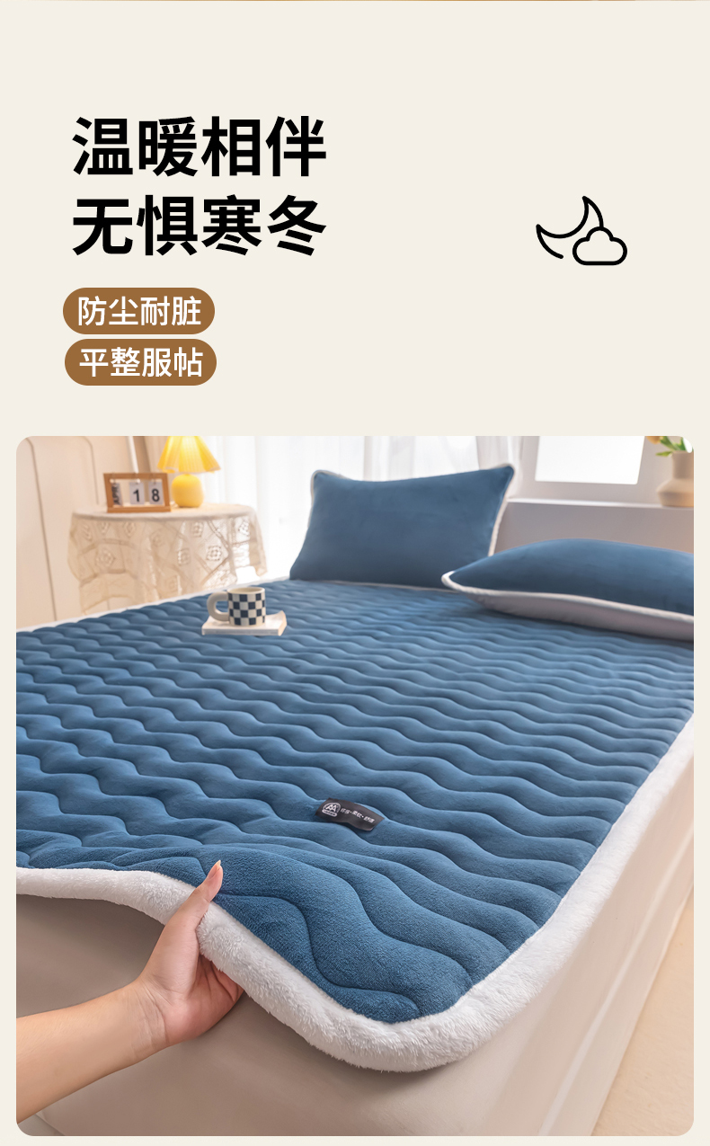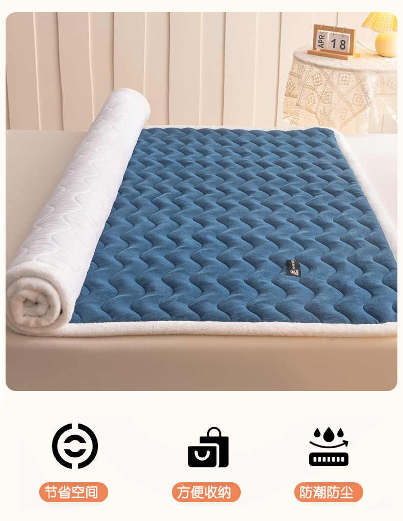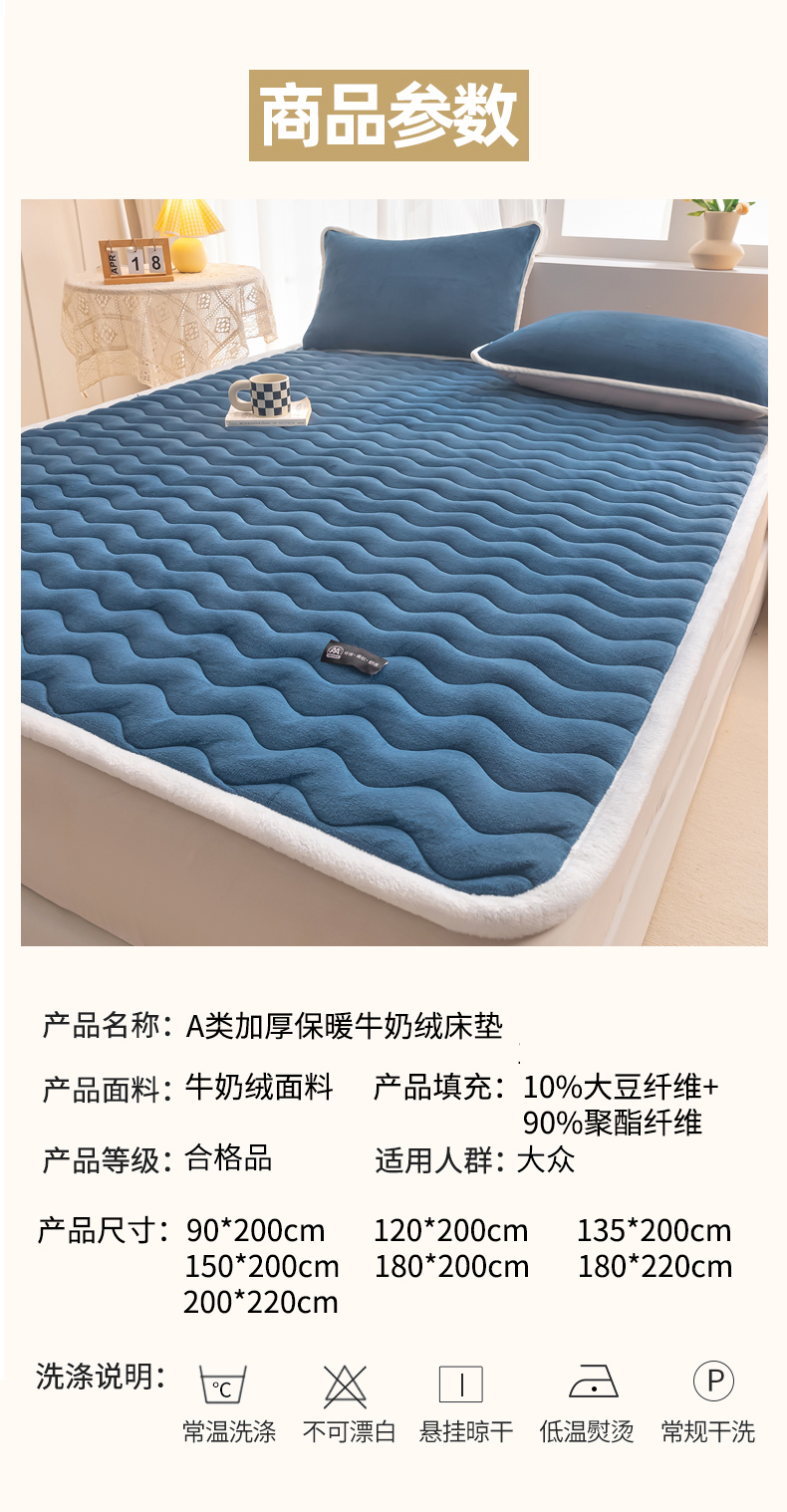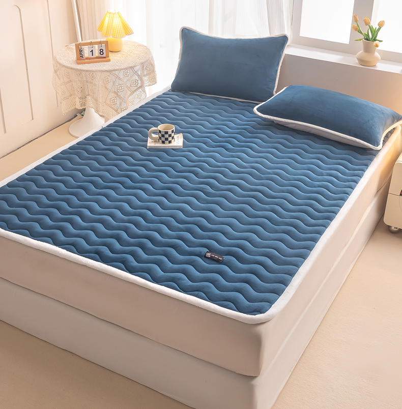 • 91家纺网 家纺一手货源 找家纺 恒尚居 2024秋冬新品牛奶绒床垫床褥垫加厚夹棉软床垫床褥子床护垫保护垫 波纹-绒垫【孔雀蓝】