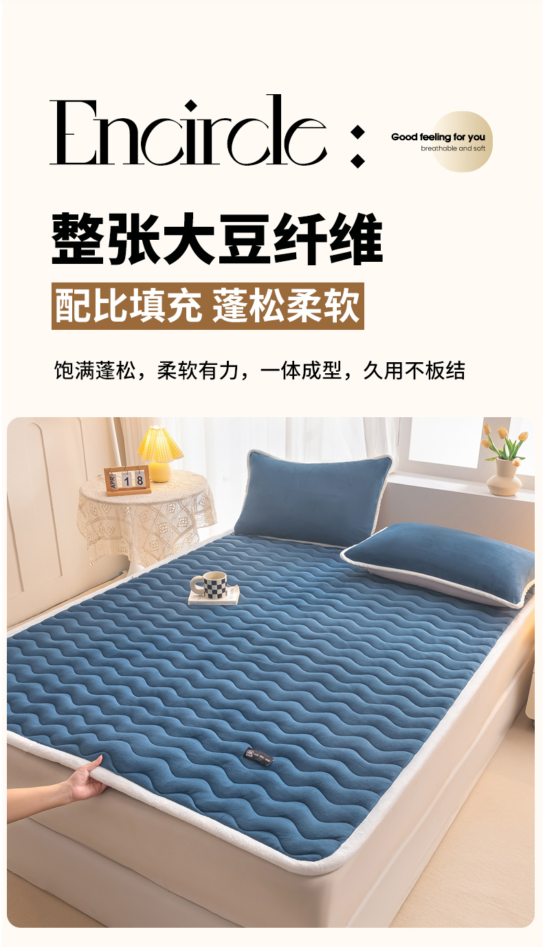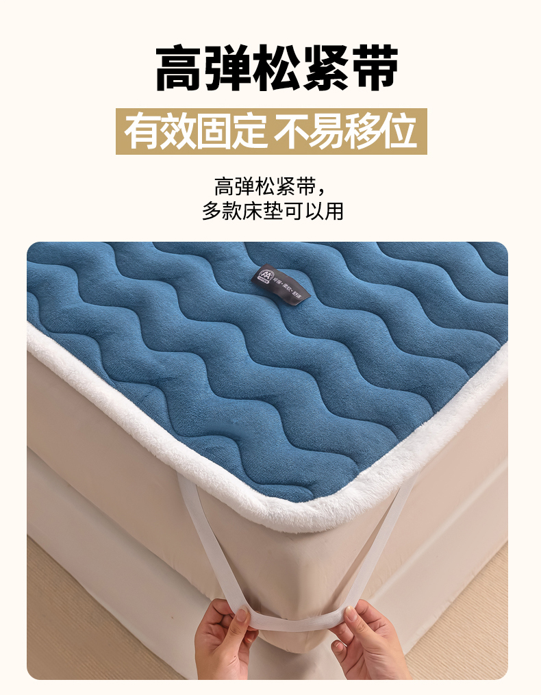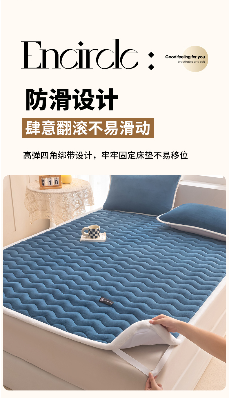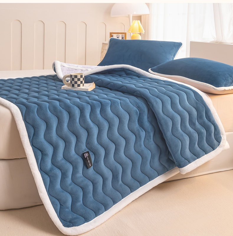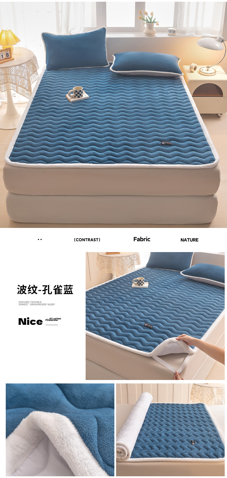• 91家纺网 家纺一手货源 找家纺 恒尚居 2024秋冬新品牛奶绒床垫床褥垫加厚夹棉软床垫床褥子床护垫保护垫 波纹-绒垫【孔雀蓝】