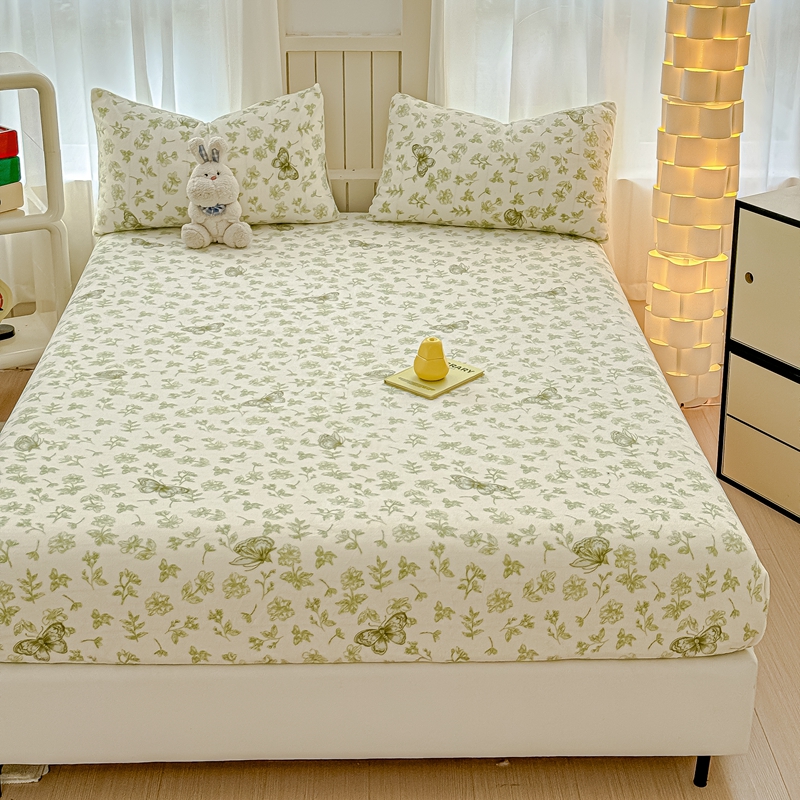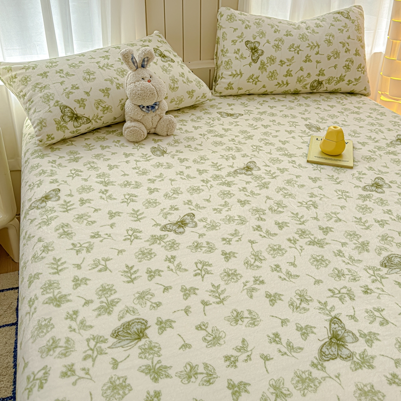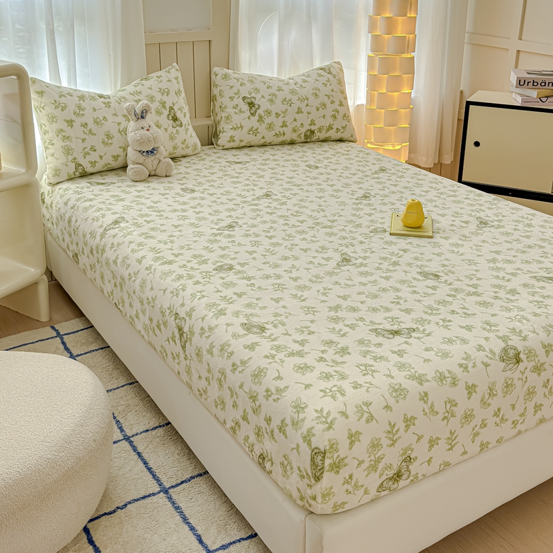 金丝鸟家纺 2024新款200g牛奶绒单床笠系列 飞花绿