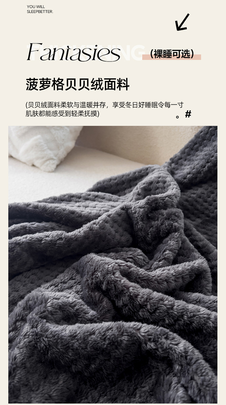 (总)卡琪曼 2024新款保暖菠萝格贝贝绒毛毯毯子,暗夜黑,豆沙紫,咖啡色,抹茶绿,奶昔白,浅灰,雾蓝