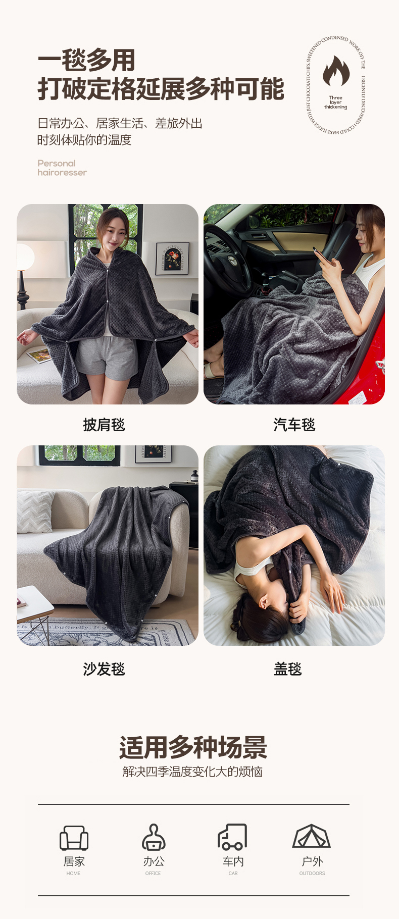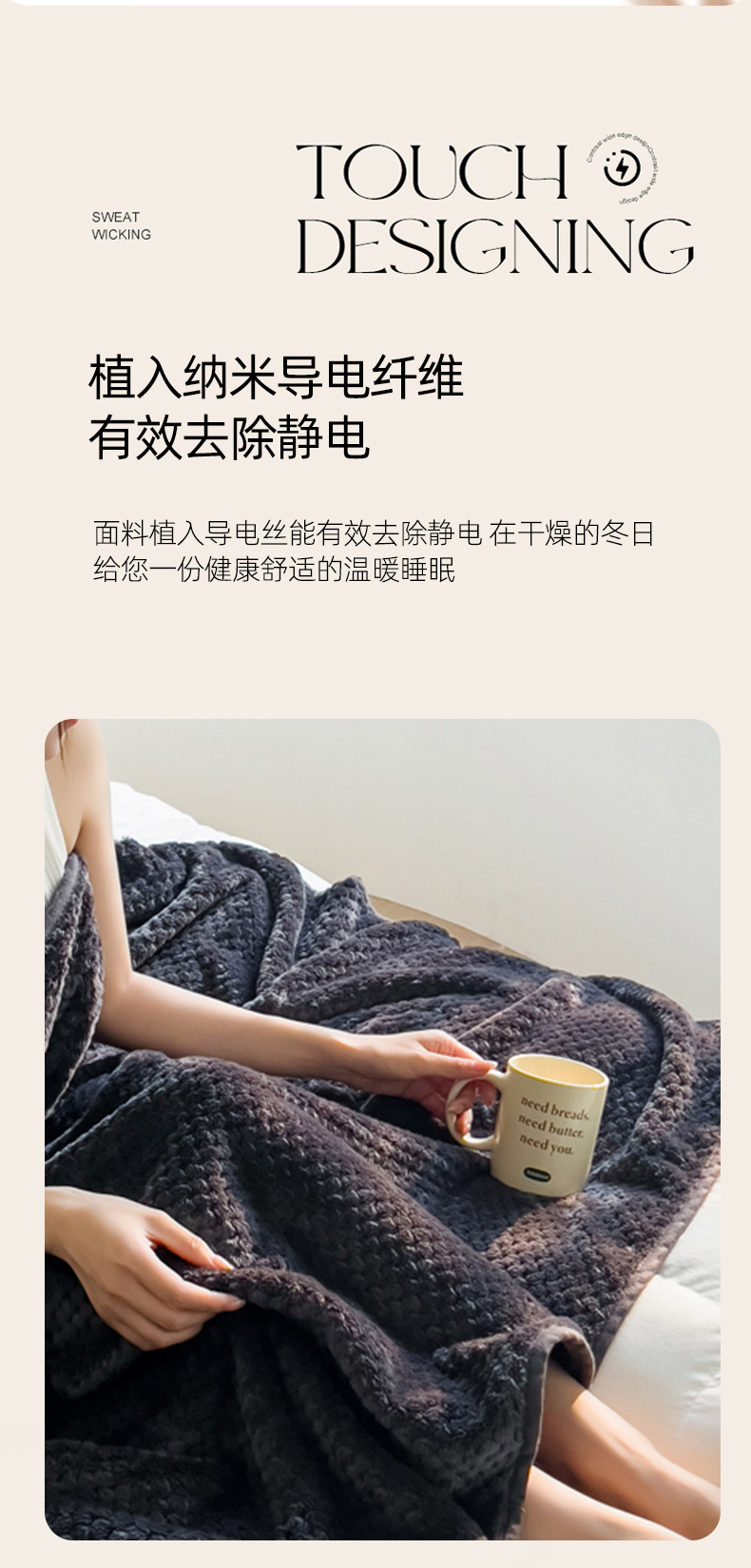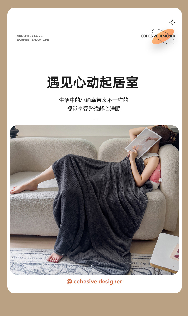 商品名称:卡琪曼 2024新款加厚保暖菠萝格披肩毯子毛毯 星耀黑