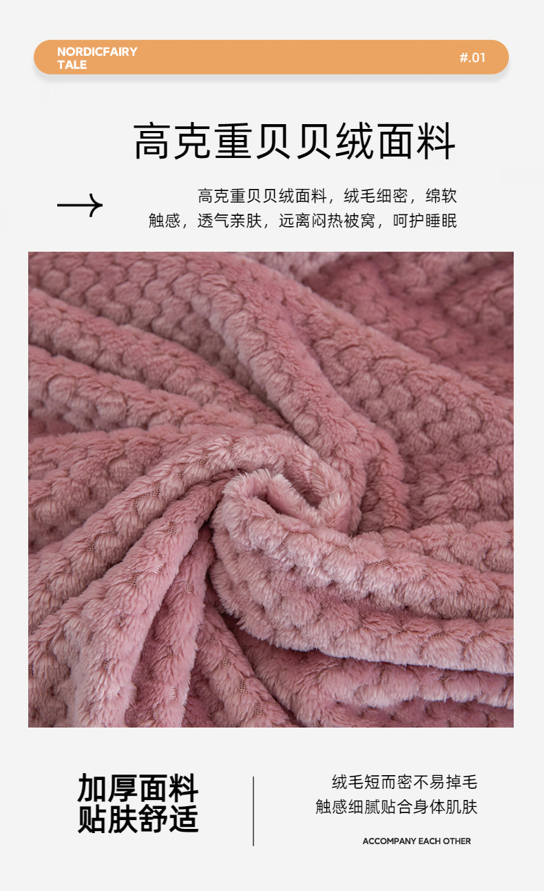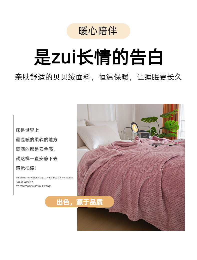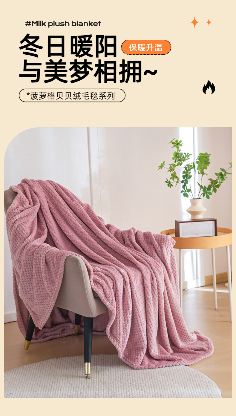 商品名称:卡琪曼 2024新款保暖菠萝格贝贝绒毛毯毯子 豆沙紫