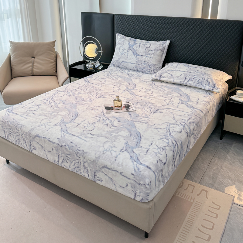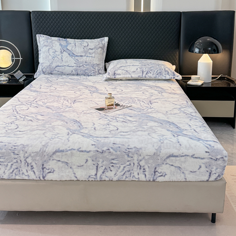 商品名称:仟网汇 2024新款兔毛绒兔绒单床笠枕套兔兔绒-小清新系列 淡纹紫