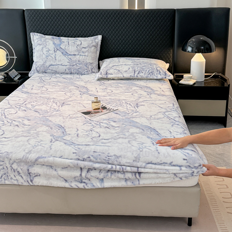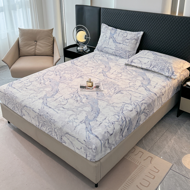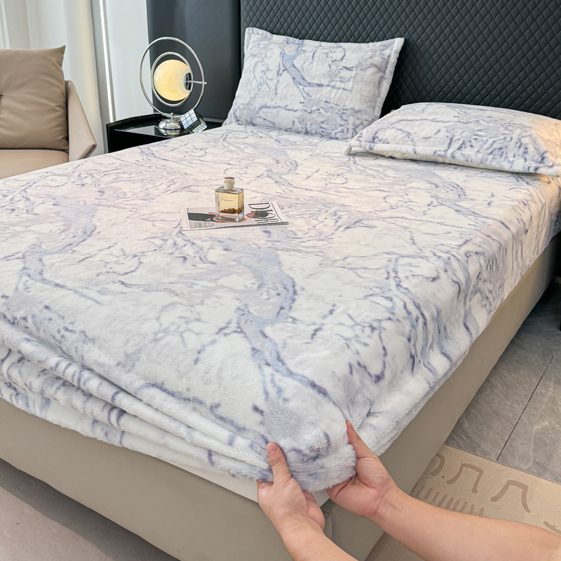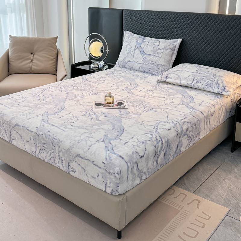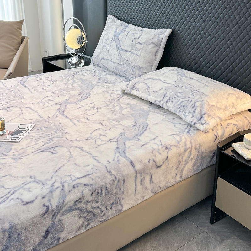 仟网汇 2024新款兔毛绒兔绒单床笠枕套兔兔绒-小清新系列 淡纹紫
