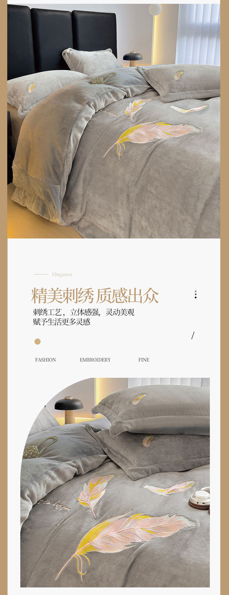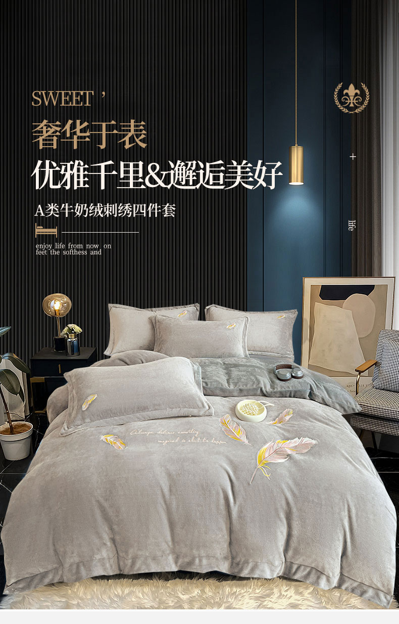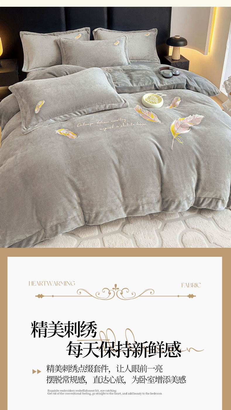 商品名称:灰鲸 2025新款A类母婴级牛奶绒刺绣套件-邂逅系列 邂逅-纳多灰+深灰