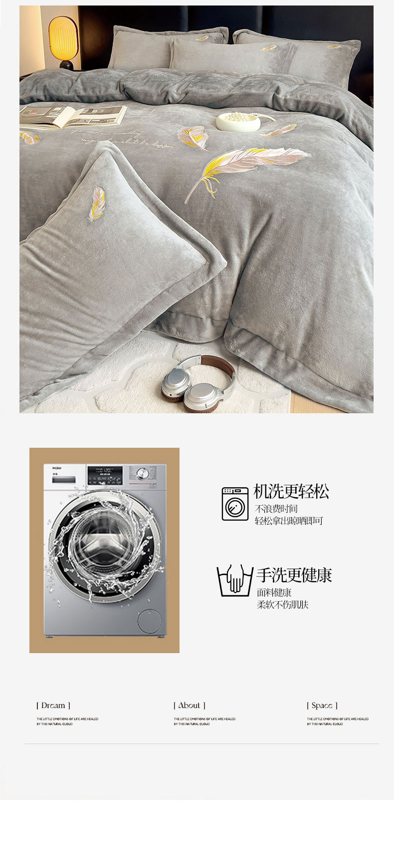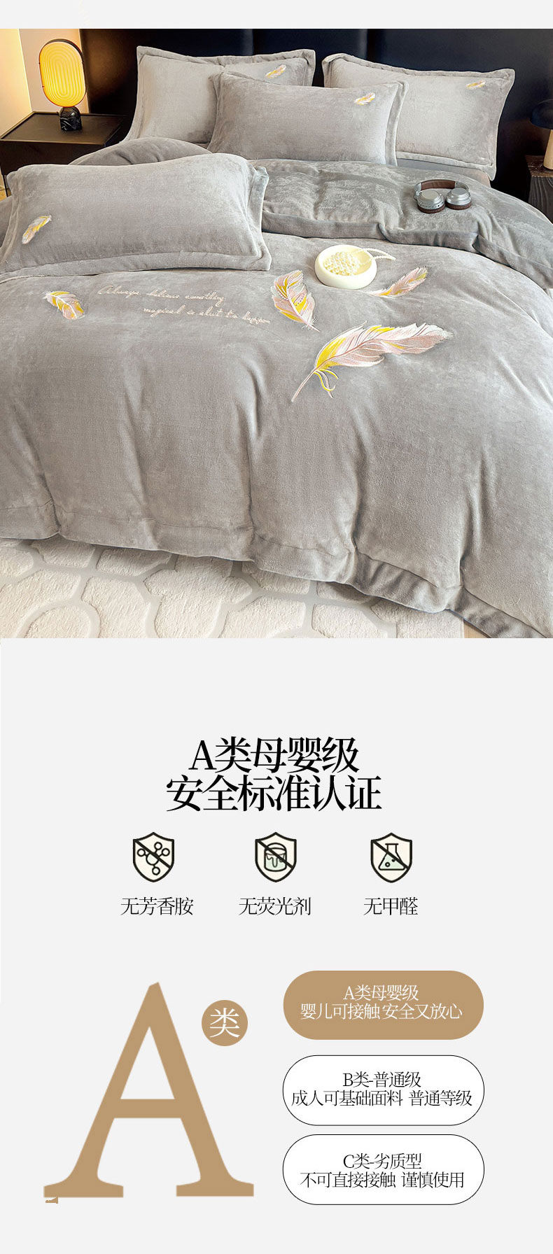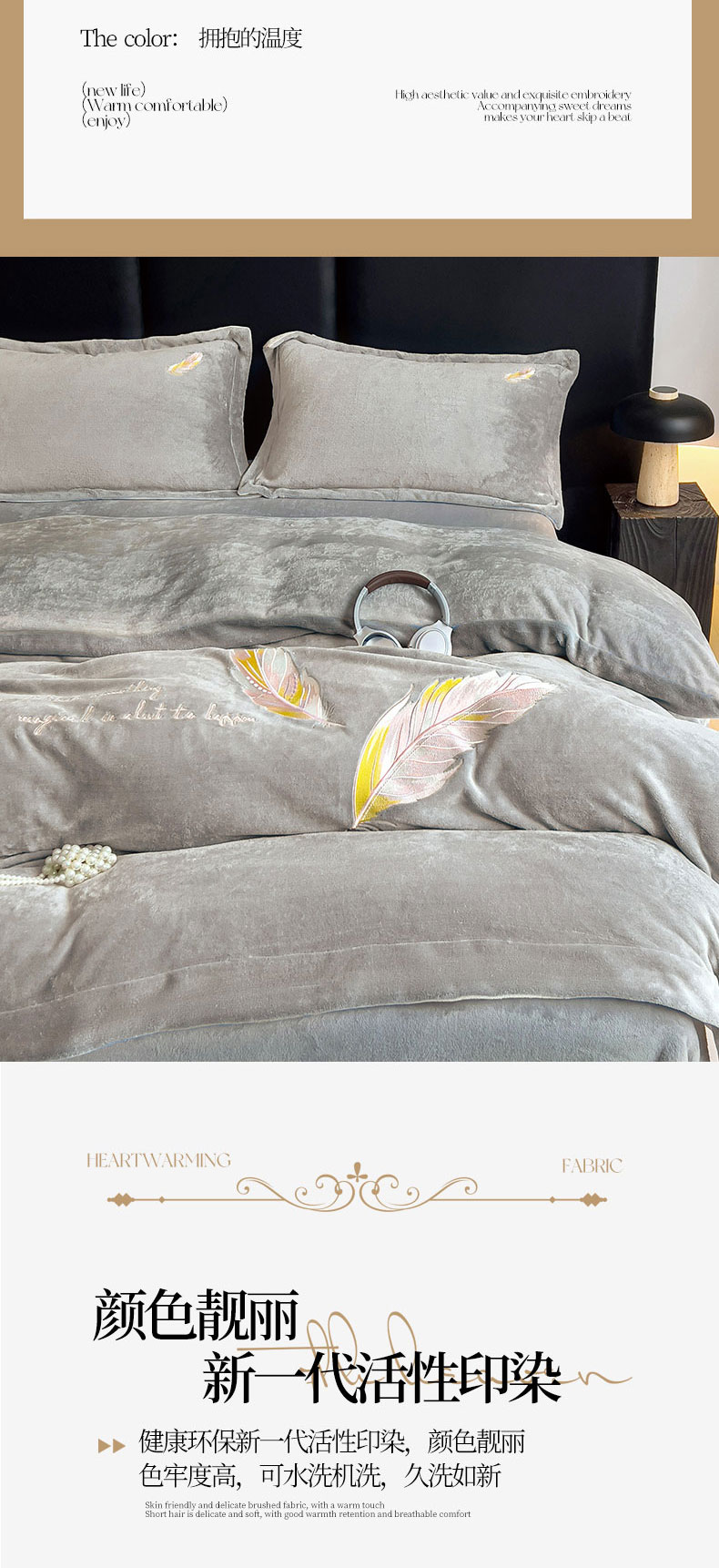 商品名称:灰鲸 2025新款A类母婴级牛奶绒刺绣套件-邂逅系列 邂逅-纳多灰+深灰