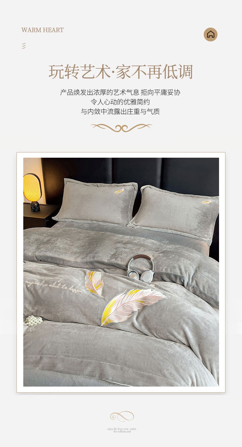 灰鲸 2025新款A类母婴级牛奶绒刺绣套件-邂逅系列 邂逅-纳多灰+深灰