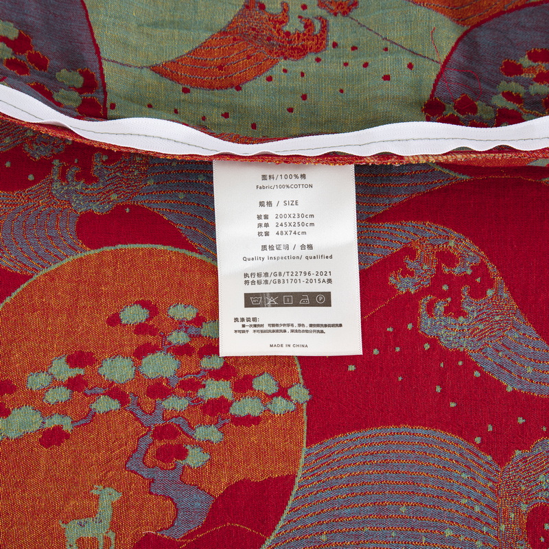 商品名称:鲁爱 2025新款大版色织提花全棉双层纱四件套 海上明月-红