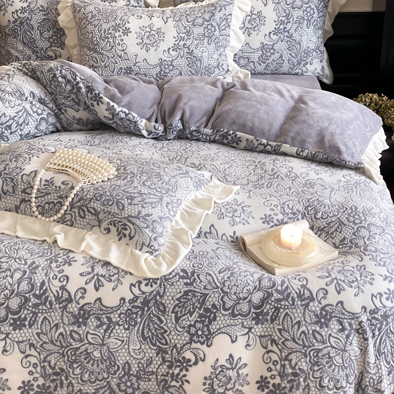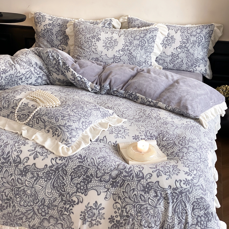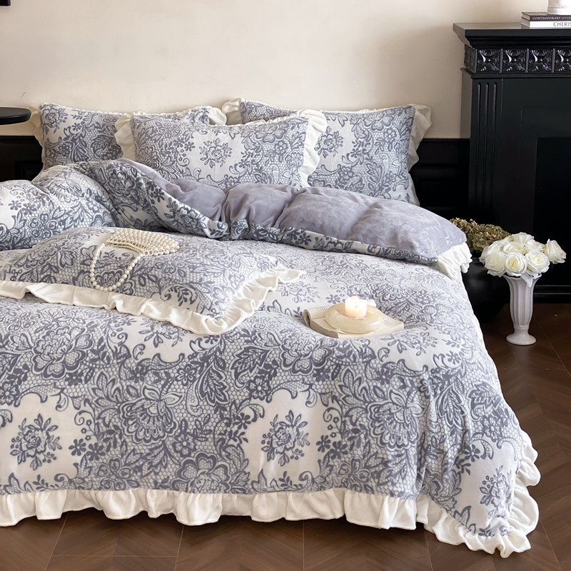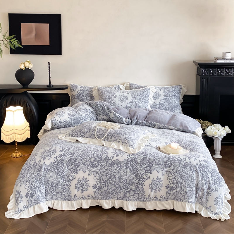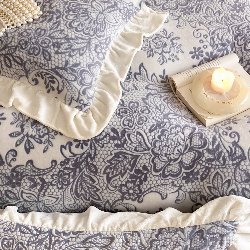 商品名称:馨蕊 2024新款秋冬轻奢煦暖绒四件套-花季 花季-北卡蓝