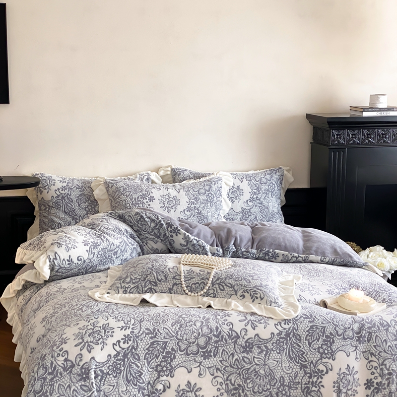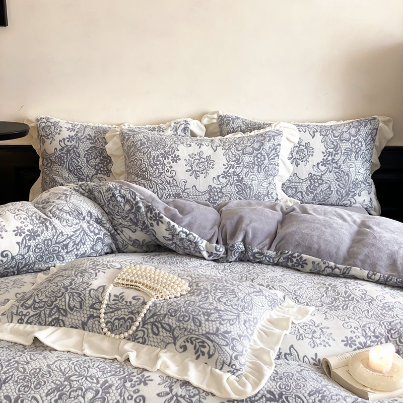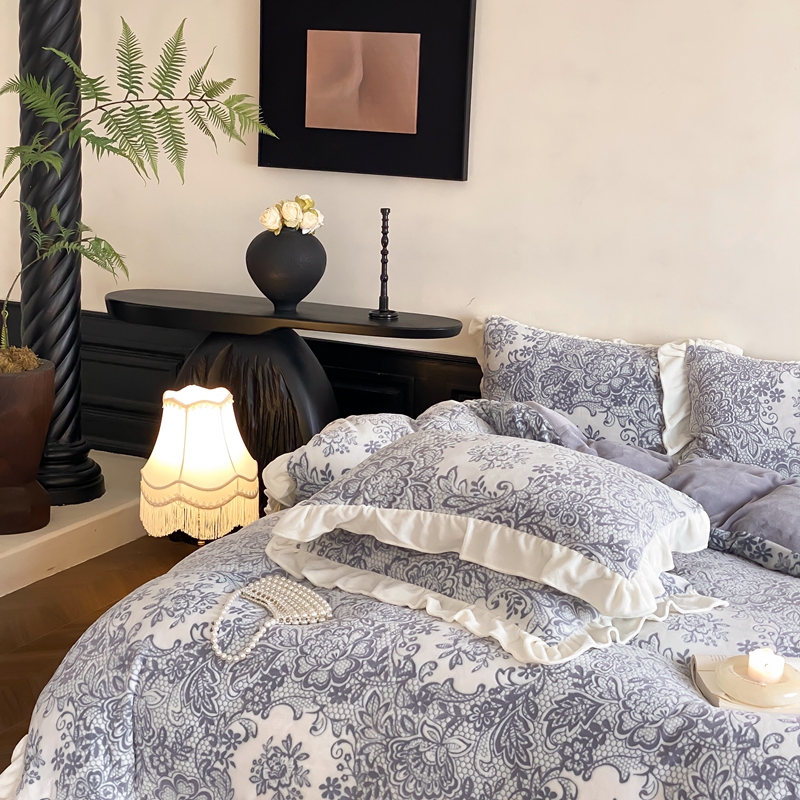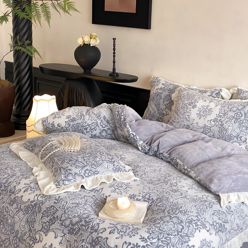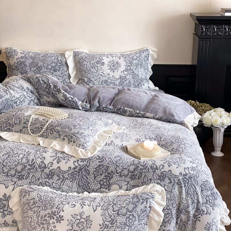 商品名称:馨蕊 2024新款秋冬轻奢煦暖绒四件套-花季 花季-北卡蓝