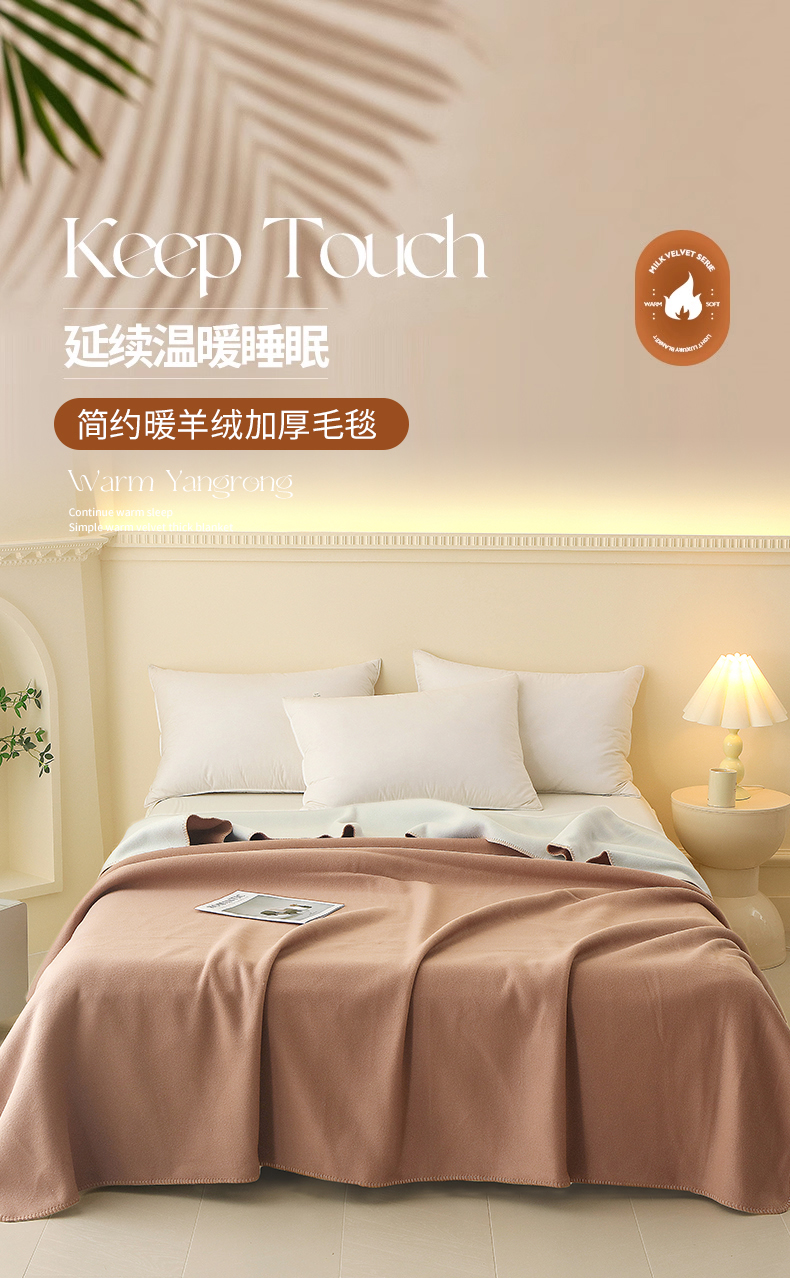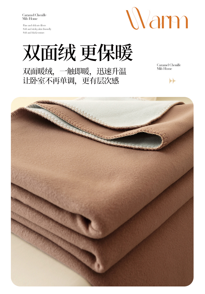 商品名称:2024新款跨境暖羊绒毛毯双层加厚保暖盖毯简约纯色法兰绒毯子