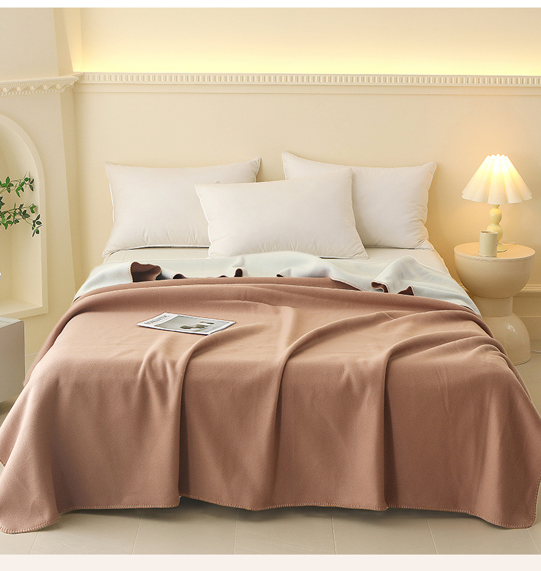 2024新款跨境暖羊绒毛毯双层加厚保暖盖毯简约纯色法兰绒毯子