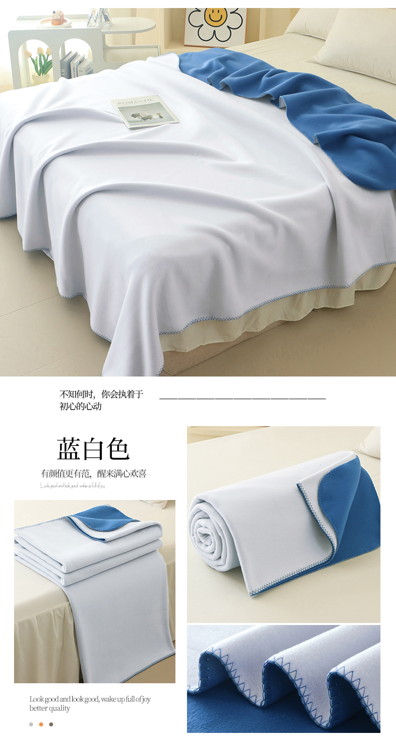 2024新款跨境暖羊绒毛毯双层加厚保暖盖毯简约纯色法兰绒毯子,灰白色,灰咖色,蓝白色,蓝色