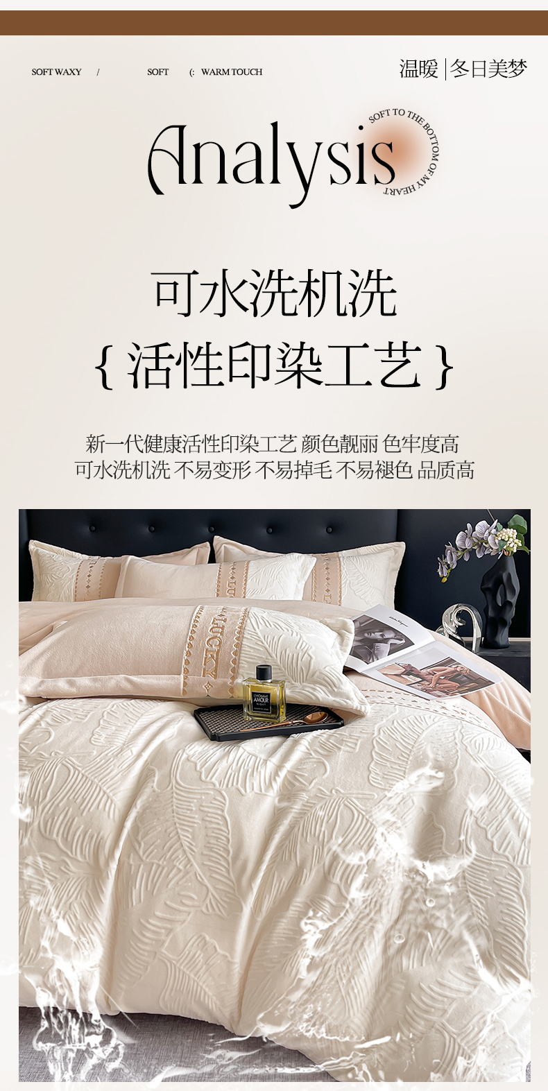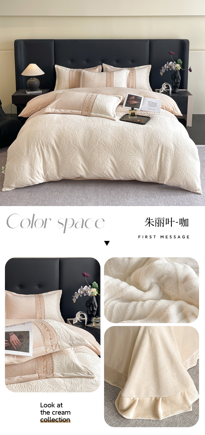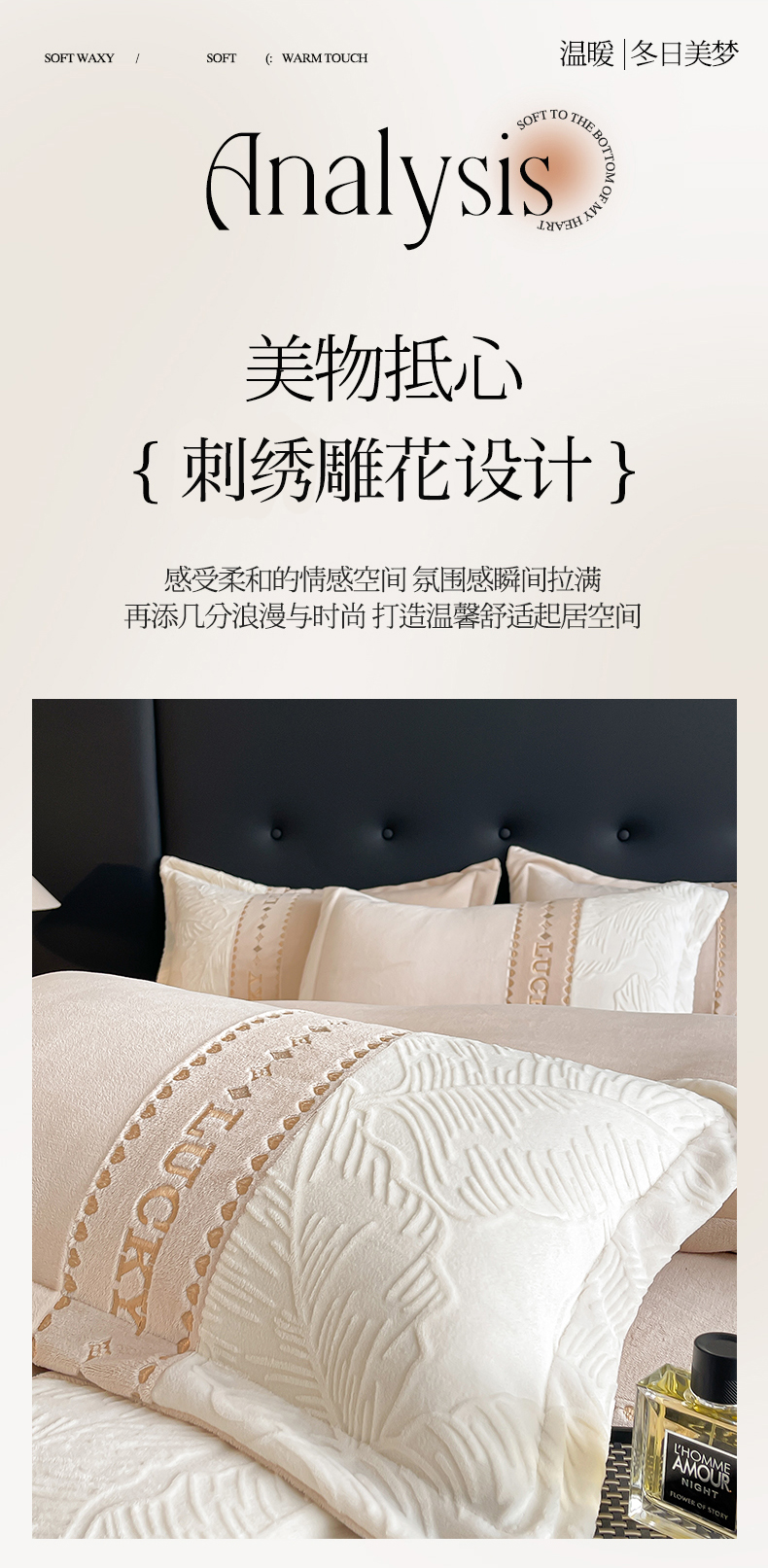 商品名称:金窝窝家纺 2024新款婴儿级牛奶绒拼接刺绣烂花雕花绒四件套--朱丽叶系列 朱丽叶-咖