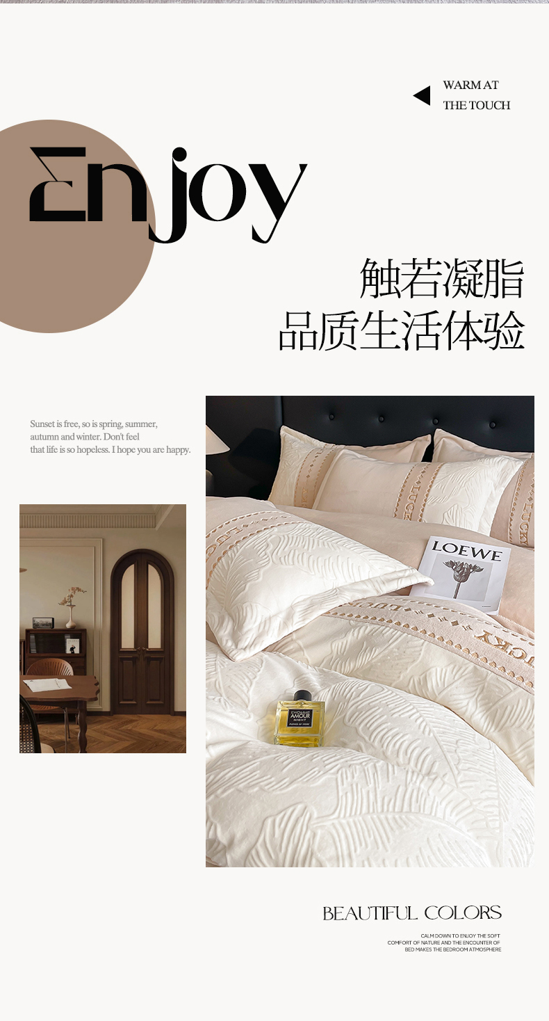 总金窝窝家纺2024重工刺绣280克A类婴儿牛奶绒刺绣四件套系列-美好生活,美好生活—粉