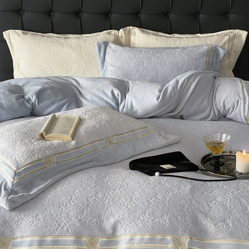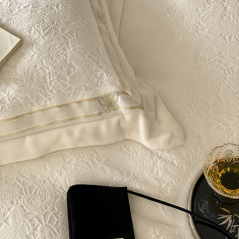 MIU缪家居 2024新款雕花牛奶绒四件套-自由之蝶 自由之蝶-粉