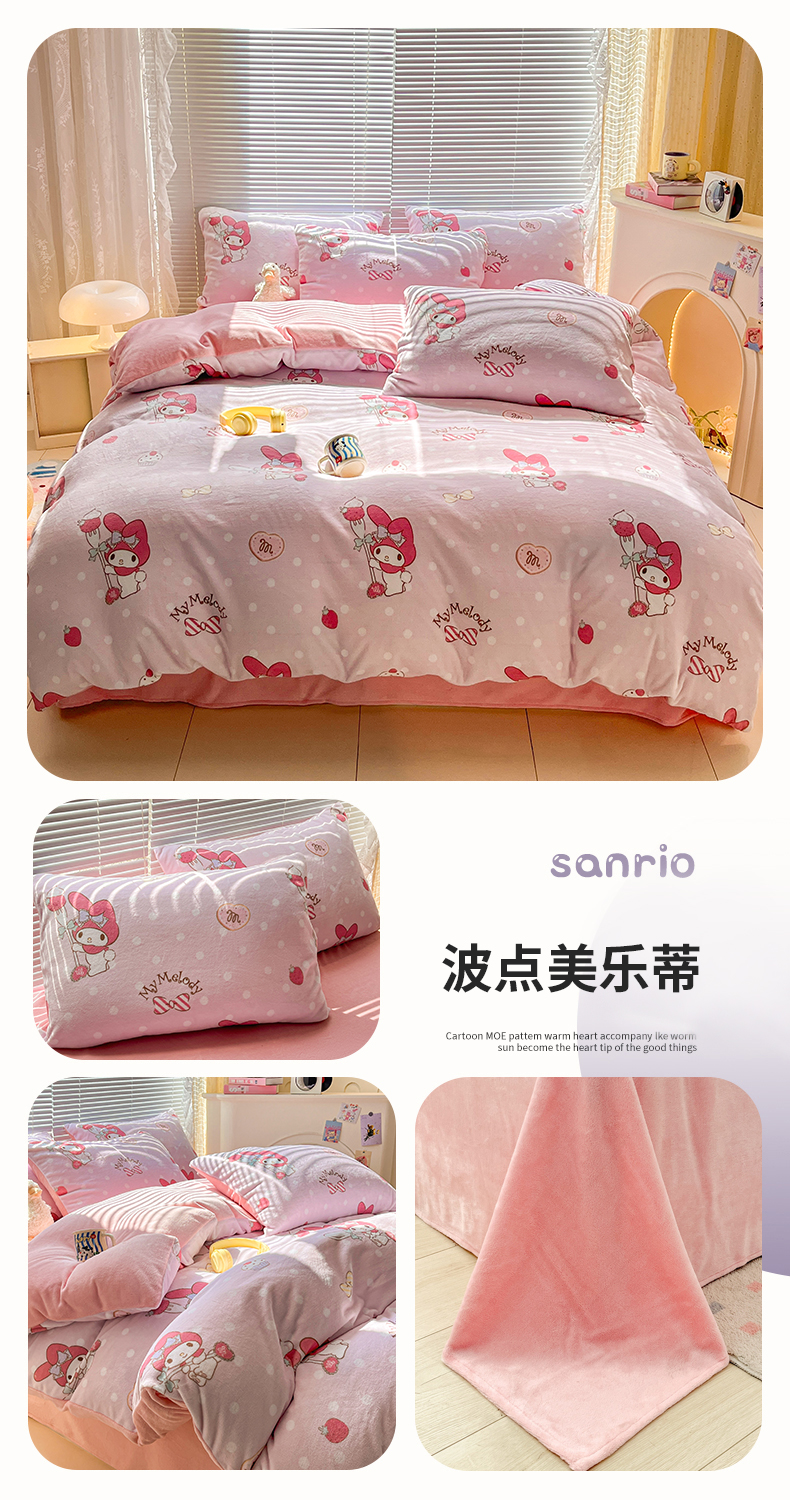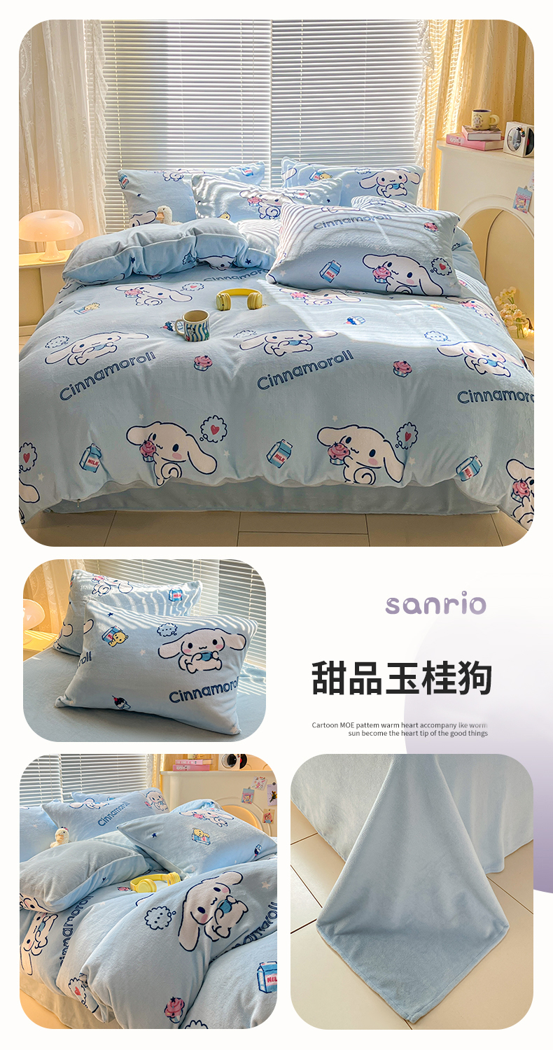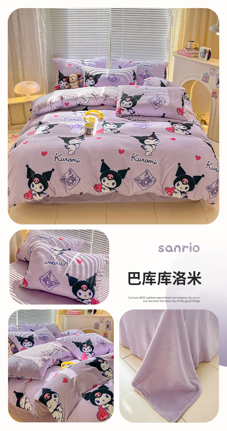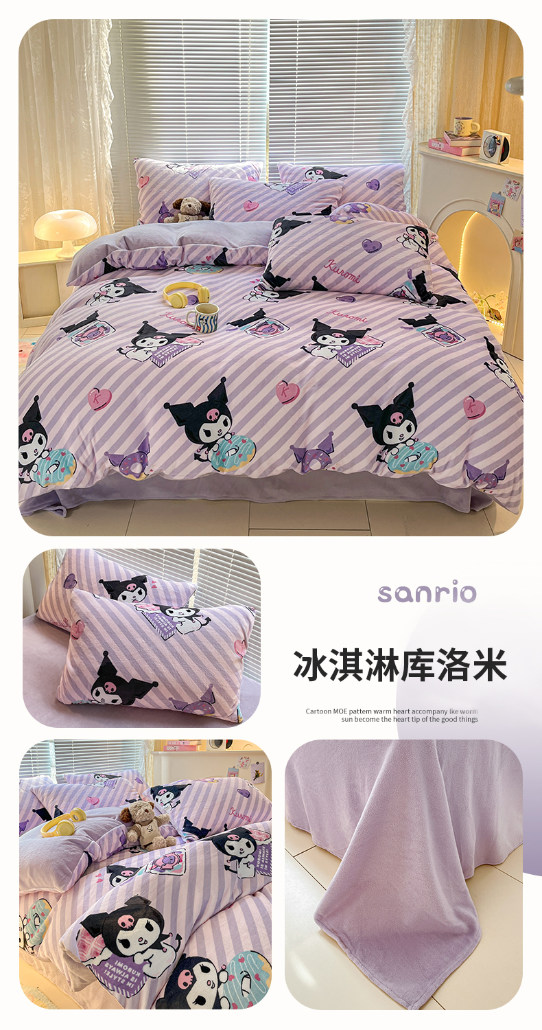 (总)美澳家纺 2024新款200克三丽鸥系列卡通印花牛奶绒单被套三四件套