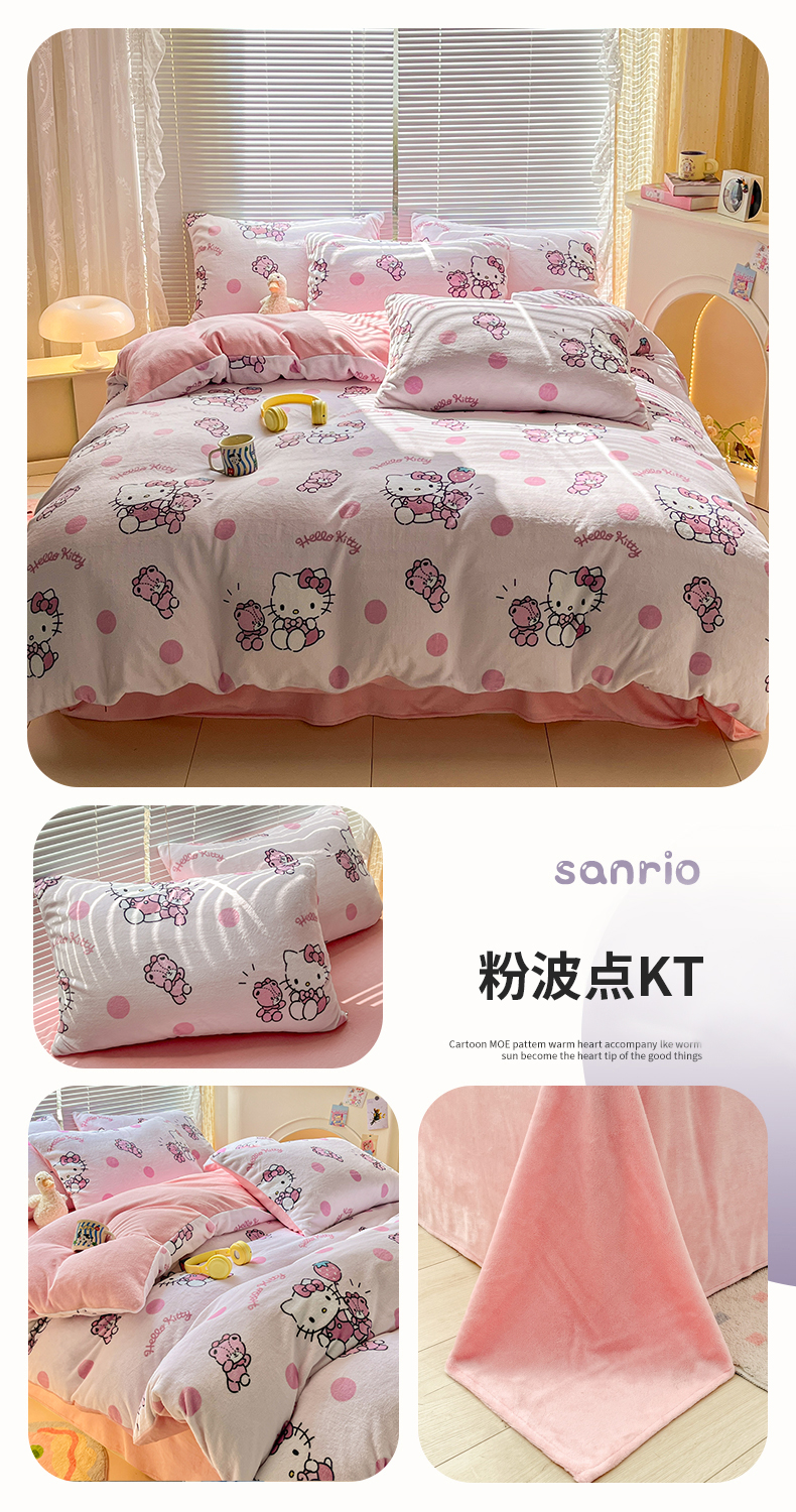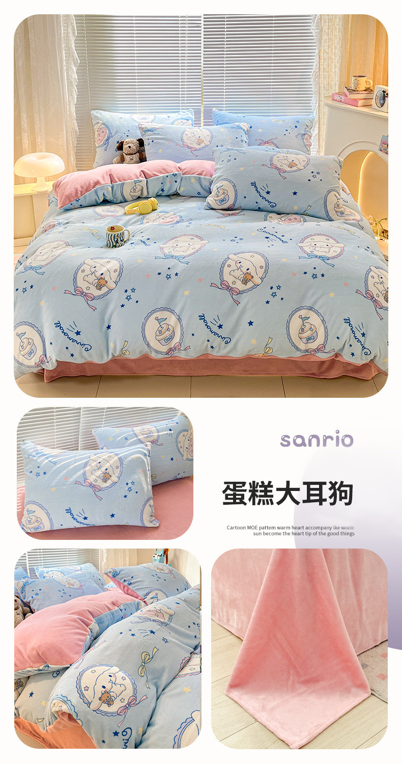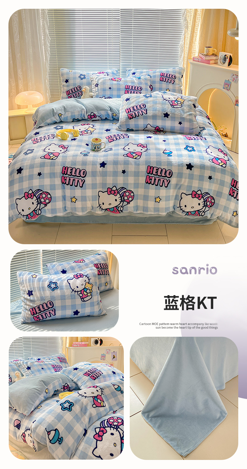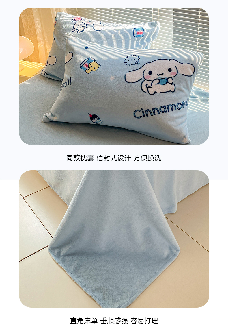 (总)美澳家纺 2024新款200克三丽鸥系列卡通印花牛奶绒单被套三四件套
