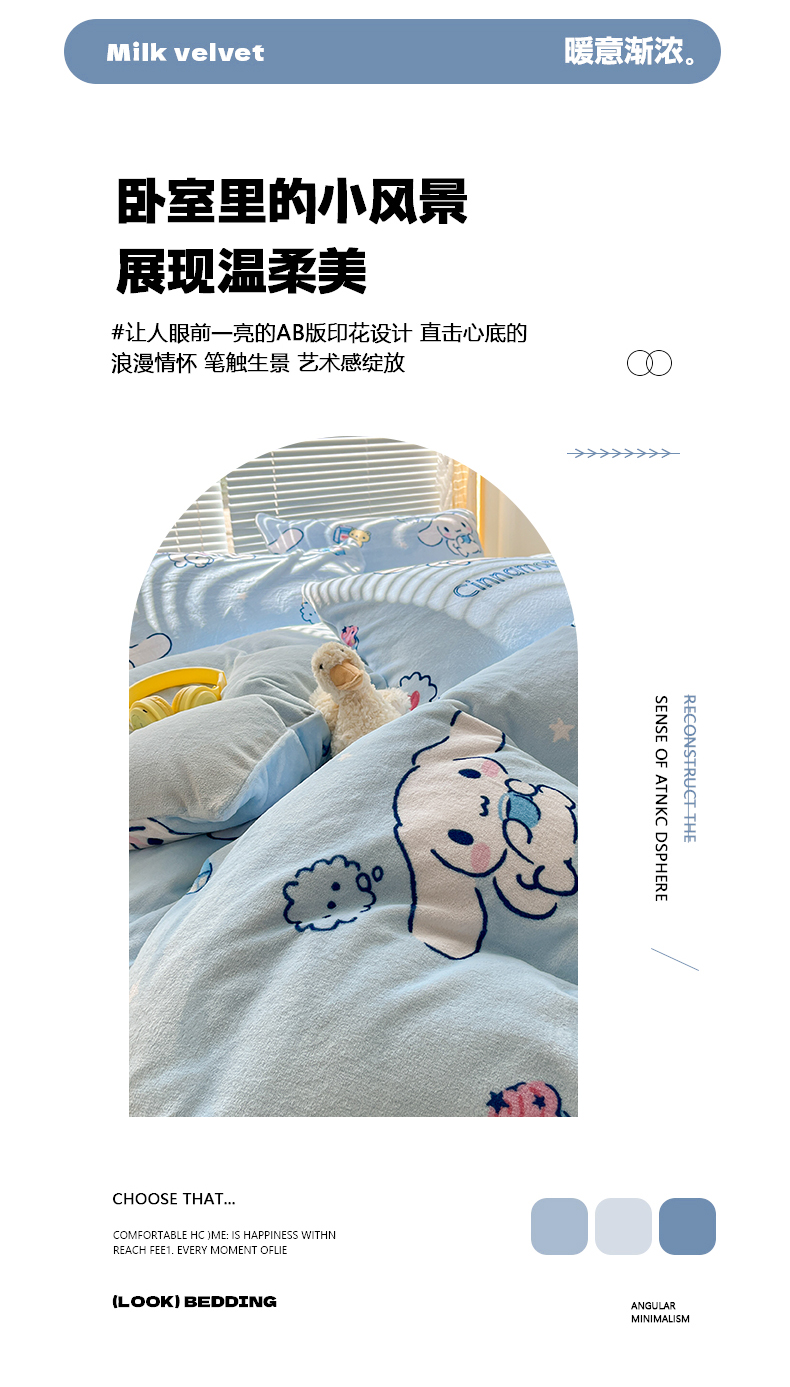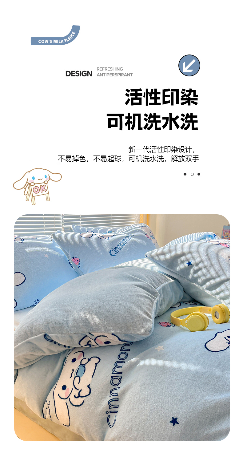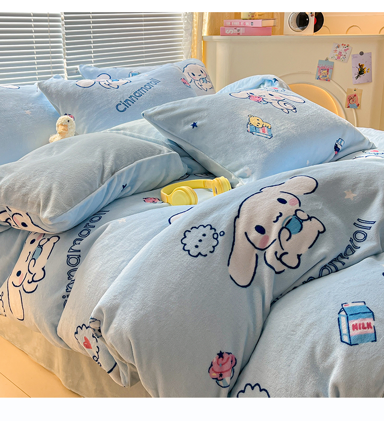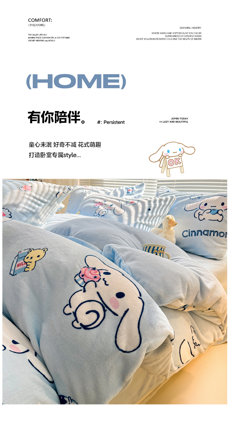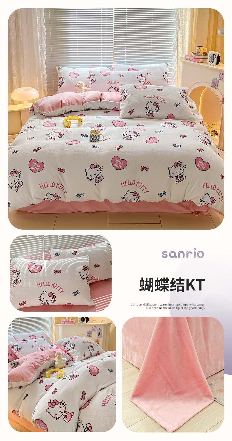 (总)美澳家纺 2024新款200克三丽鸥系列卡通印花牛奶绒单被套三四件套