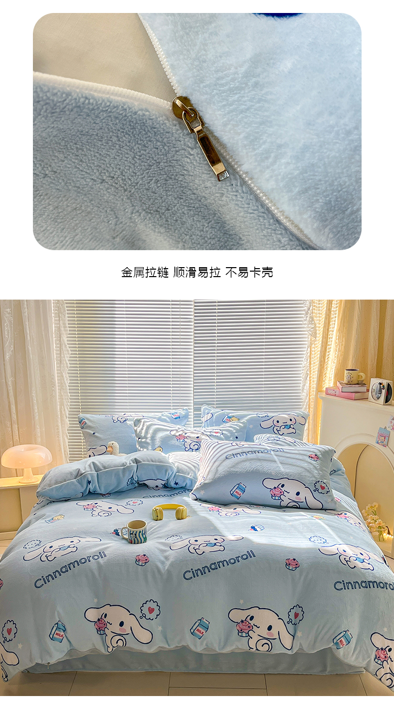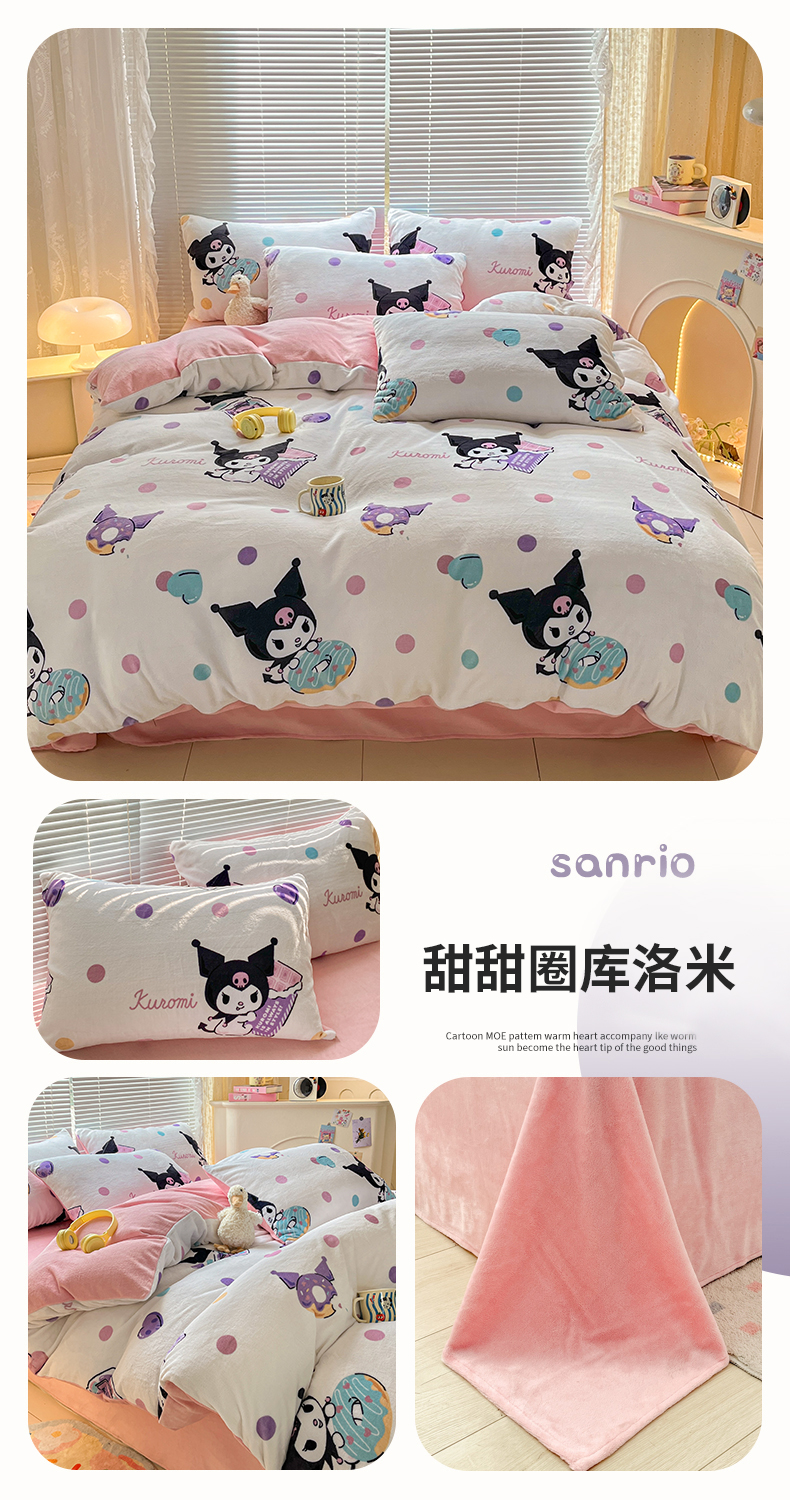 商品名称:(总)美澳家纺 2024新款200克三丽鸥系列卡通印花牛奶绒单被套三四件套