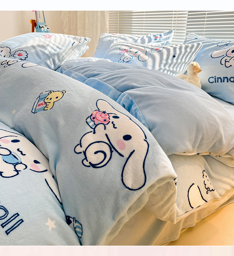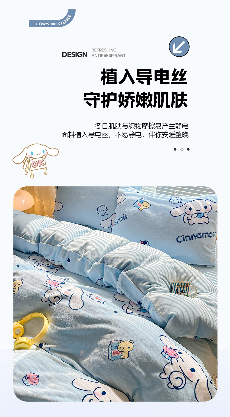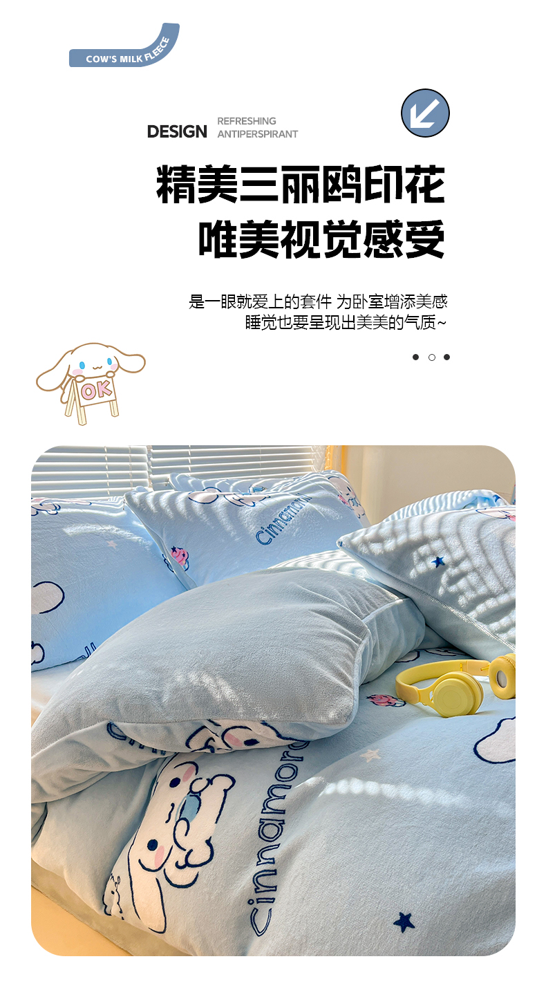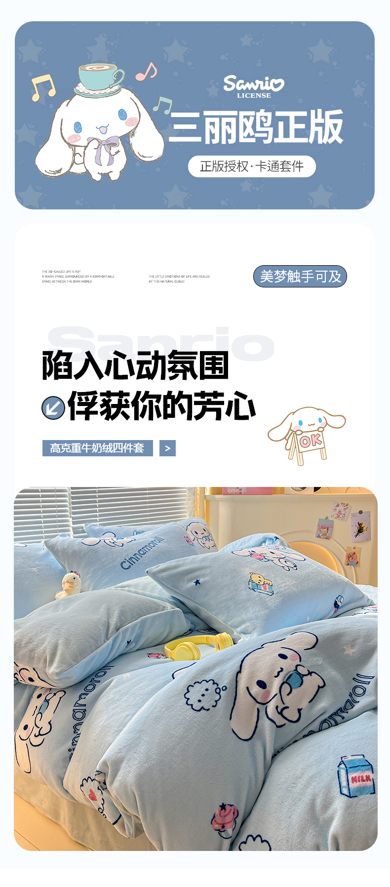 当前位置: 91家纺网 > 商品网购 > 床品套件 > 四件套 > 牛奶绒四件套 > 美澳家纺 2024新款200克三丽鸥系列卡通印花牛奶绒单被套三四件套 甜品玉桂狗
