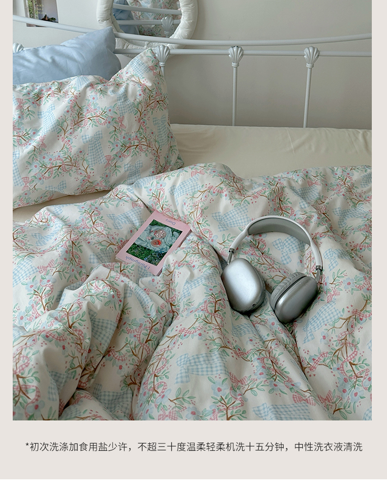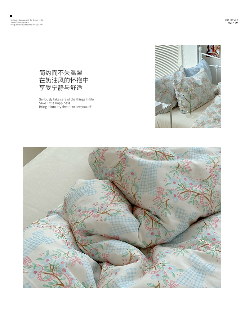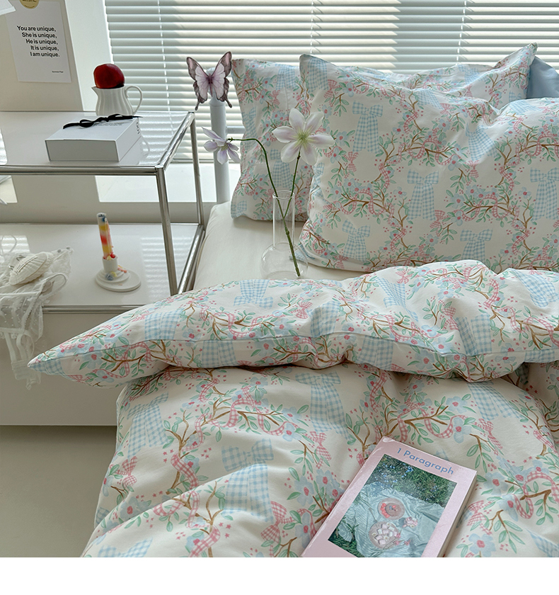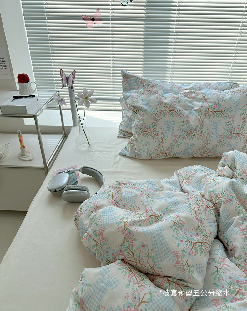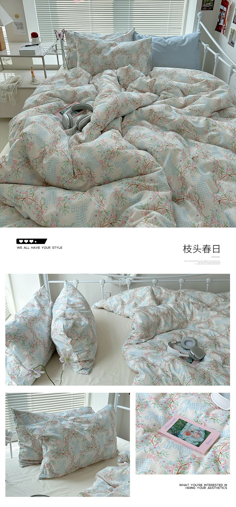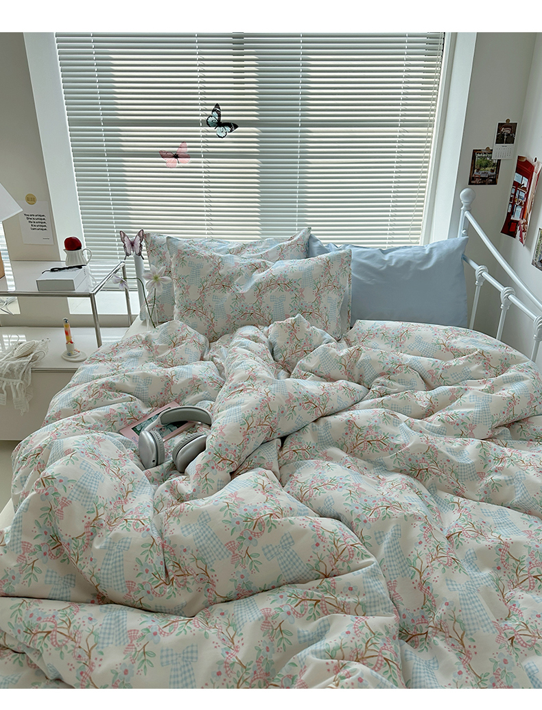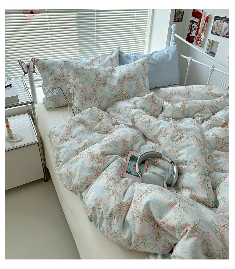当前位置: 91家纺网 > 商品网购 > 床品套件 > 四件套 > 全棉普通四件套 > (总)尺素 2024新款韩国小碎花全棉四件套纯棉蝴蝶结粉色被套双人纯色床单1.2学生宿舍三件套-枝头春日