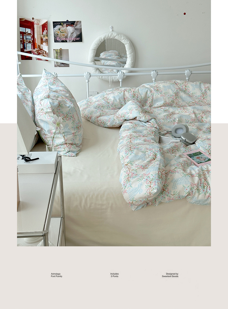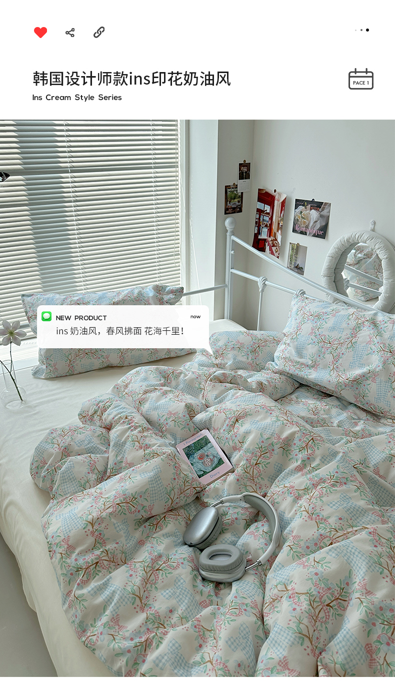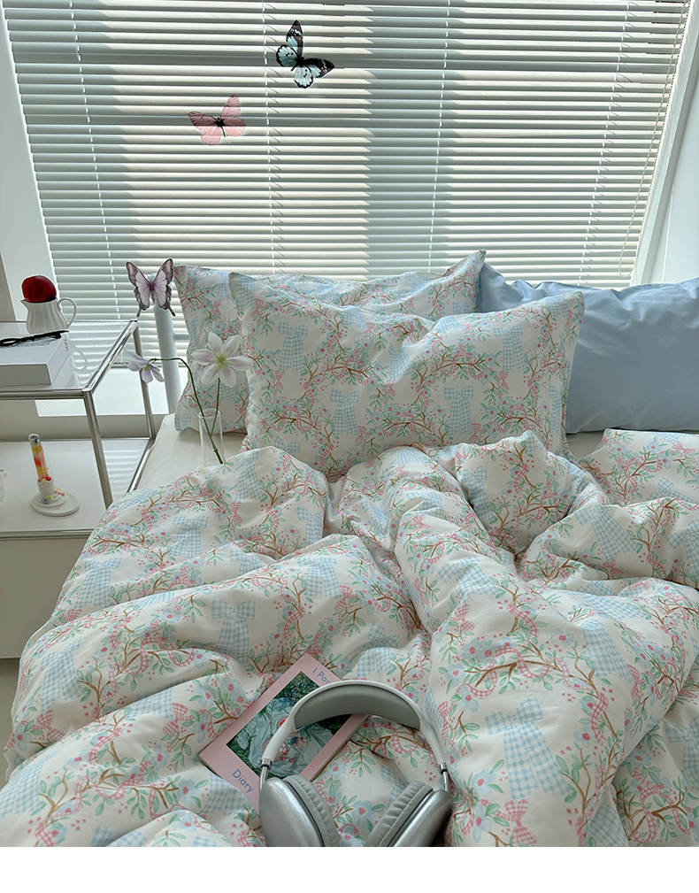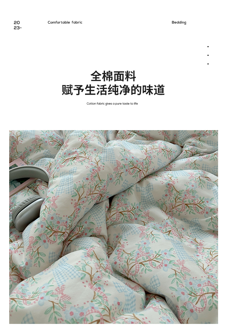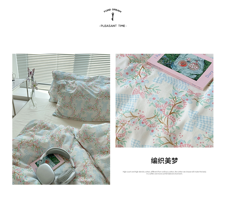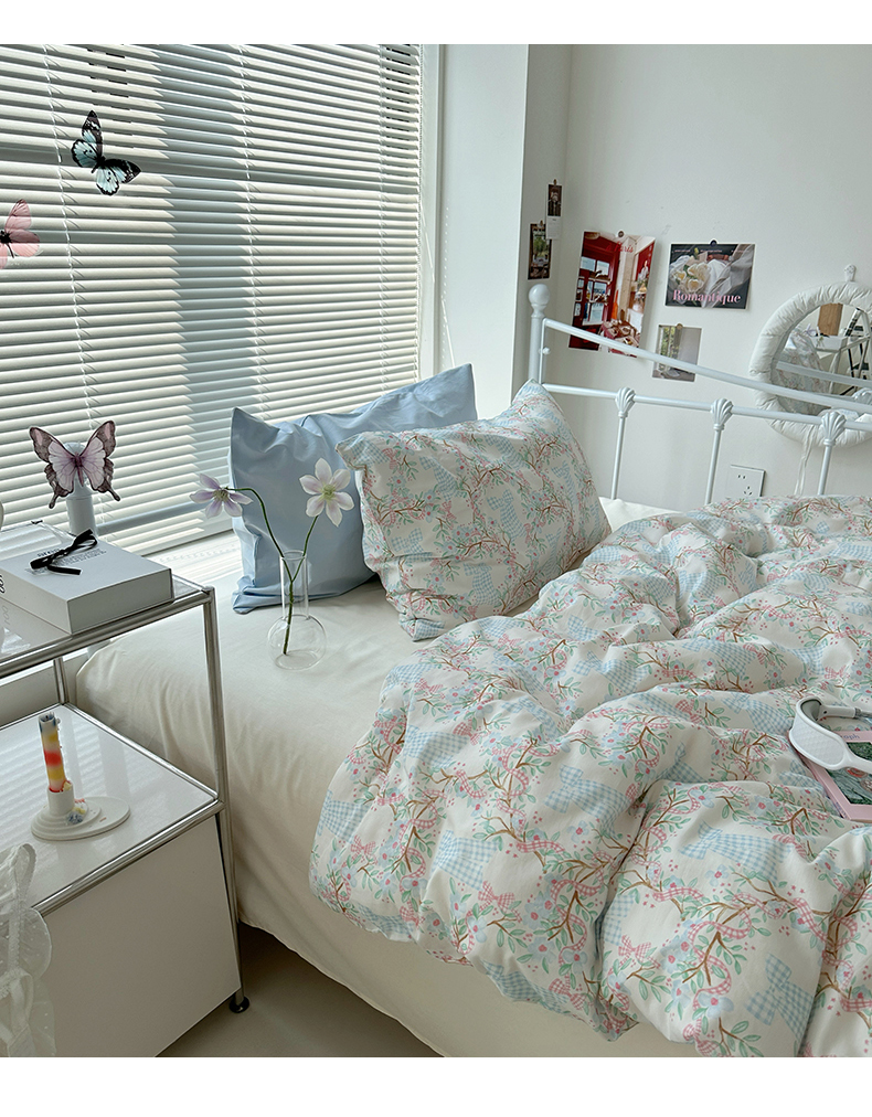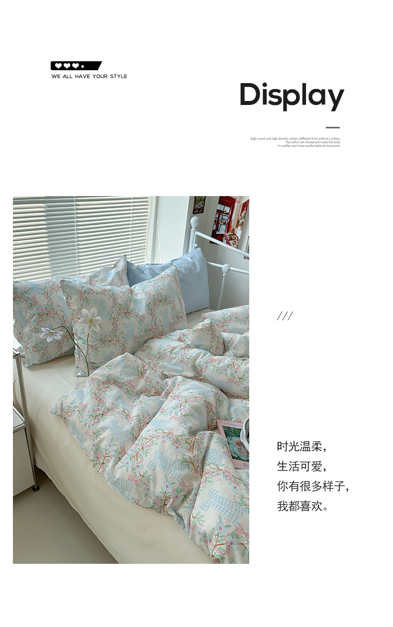 当前位置: 91家纺网 > 商品网购 > 床品套件 > 四件套 > 全棉普通四件套 > (总)尺素 2024新款韩国小碎花全棉四件套纯棉蝴蝶结粉色被套双人纯色床单1.2学生宿舍三件套-枝头春日