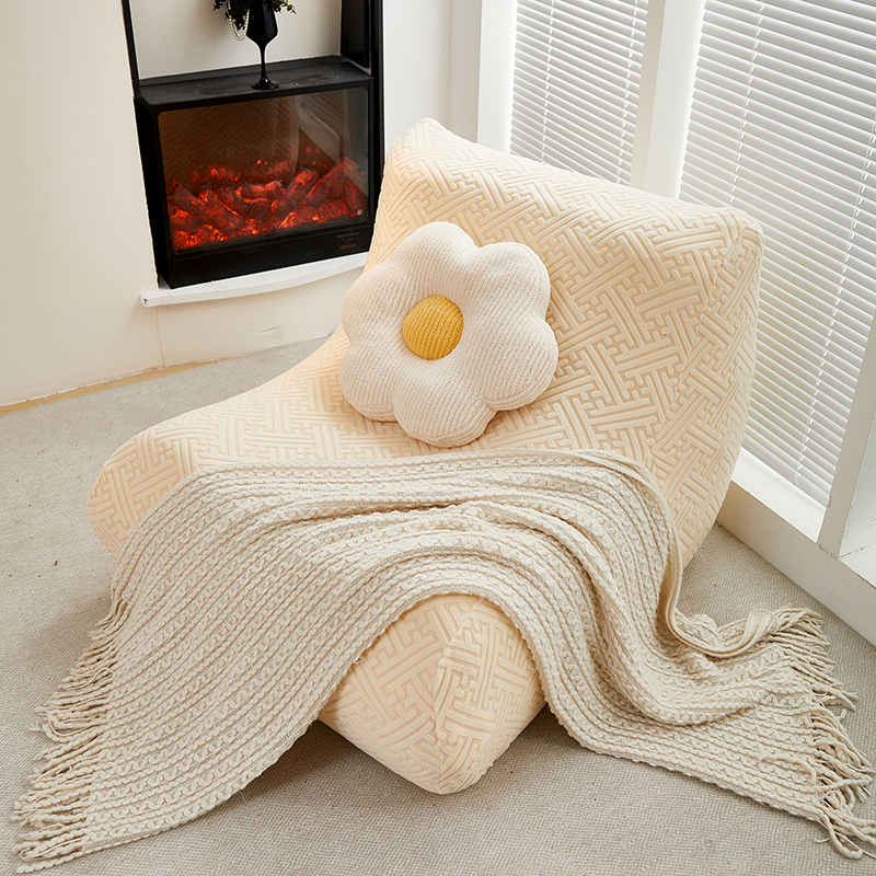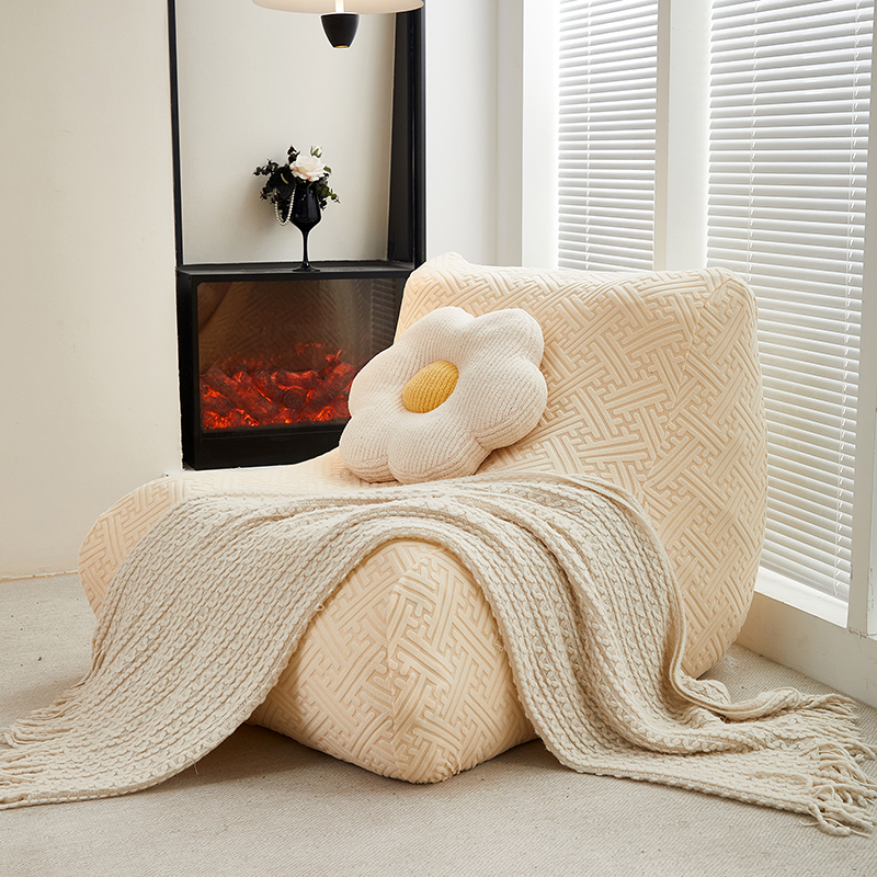 商品名称:共鸣沙发套 2024新款拉绒提花系列懒人沙发套 拉绒米黄