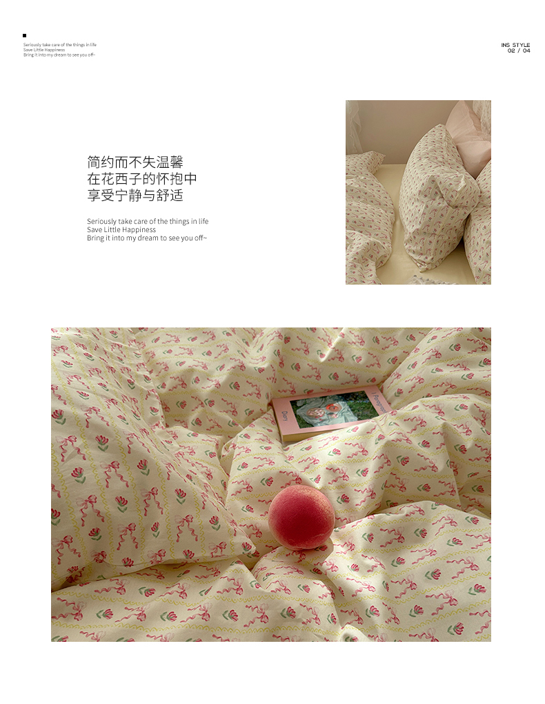 当前位置: 91家纺网 > 商品网购 > 床品套件 > 四件套 > 全棉普通四件套 > 韩国纯棉ins风小碎花田园风四件套花卉活性印花小清新被套纯色加大床单1.8床笠混搭风纯色印花枕套 一朵春光(奶黄)