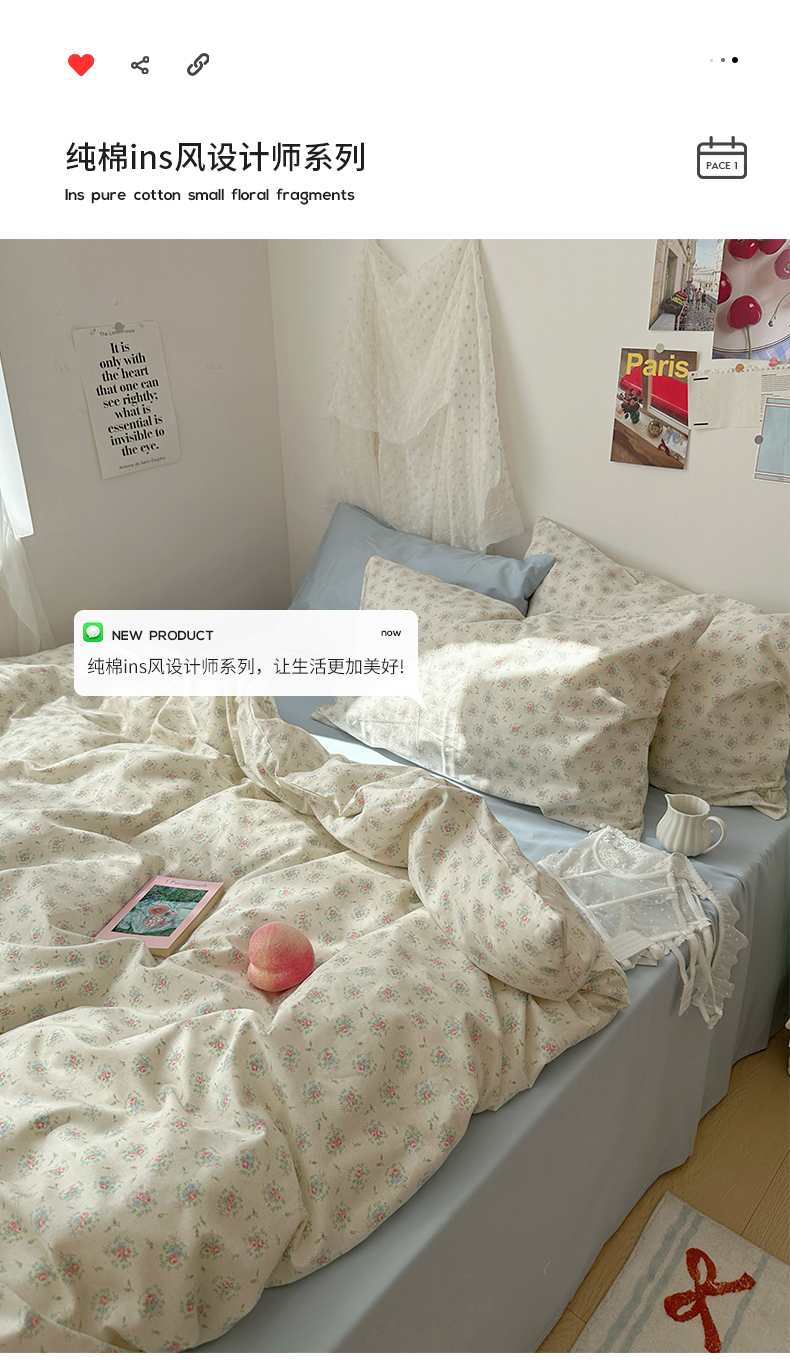 当前位置: 91家纺网 > 商品网购 > 床品套件 > 四件套 > 全棉普通四件套 > 新款纯棉ins风小碎花田园风四件套花卉活性印花小清新被套纯色加大床单1.8床笠混搭风纯色印花枕套 初尧浅蓝
