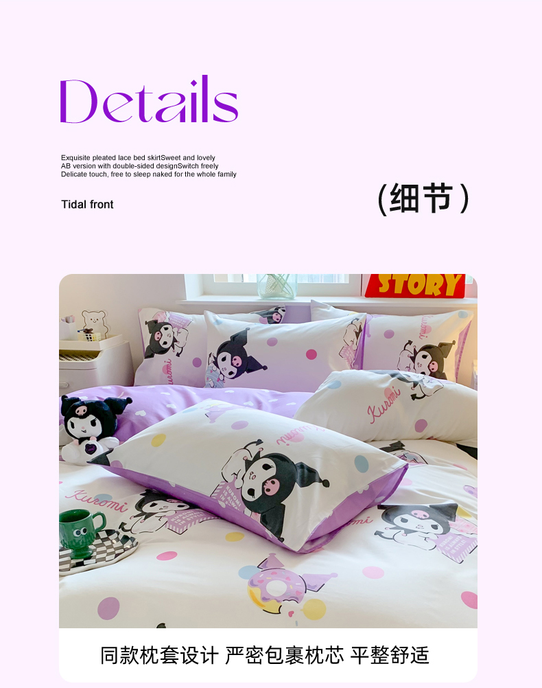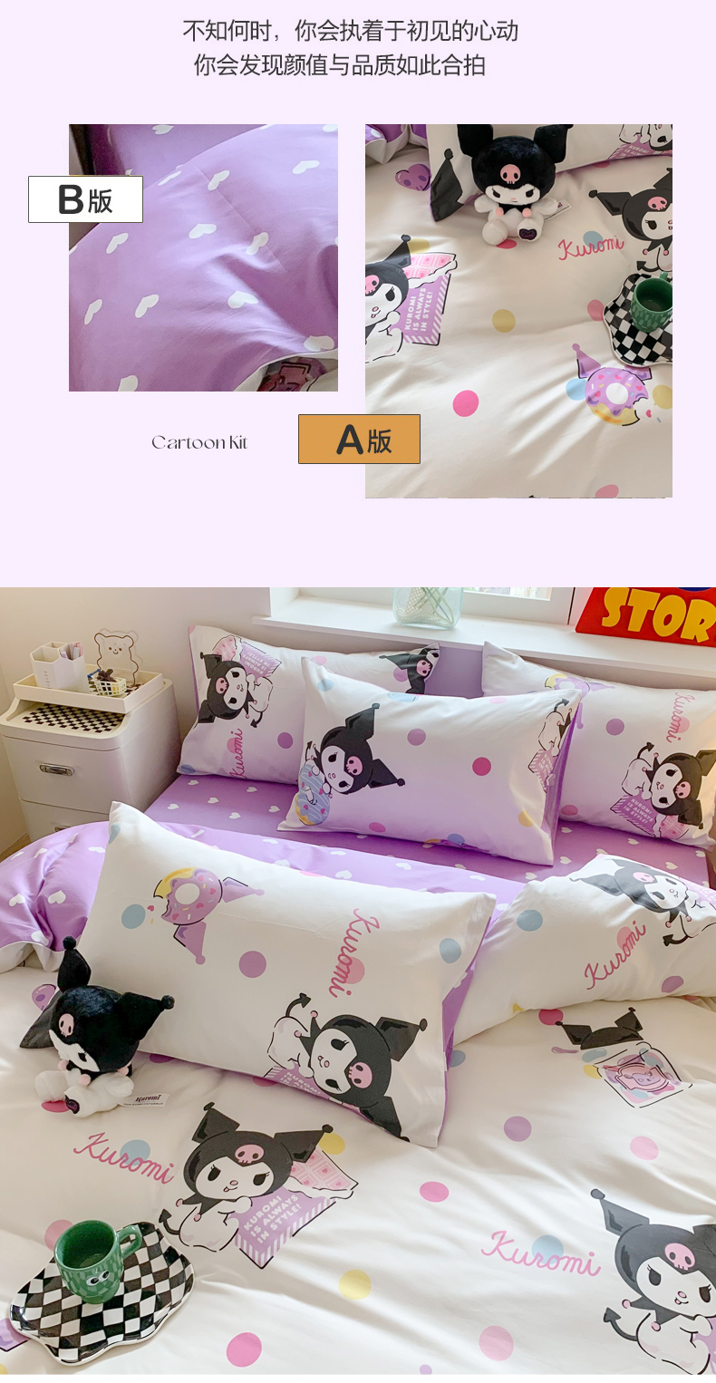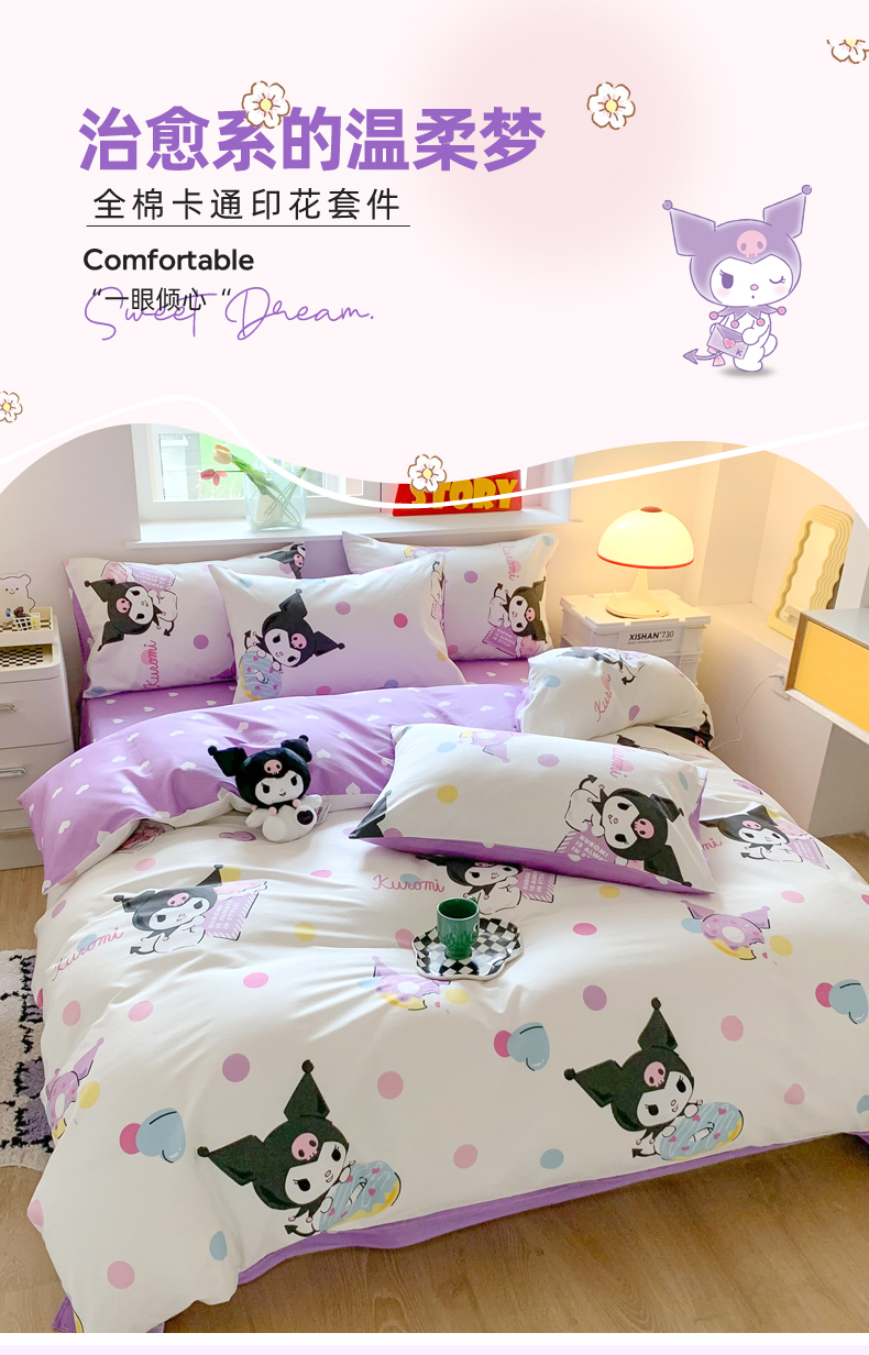 当前位置: 91家纺网 > 商品网购 > 床品套件 > 四件套 > 全棉普通四件套 > 玉元坊 2025年新款三丽鸥系列全棉纯棉简约基础款四件套三件套--库洛米简约款式 波点库洛米【简约款】