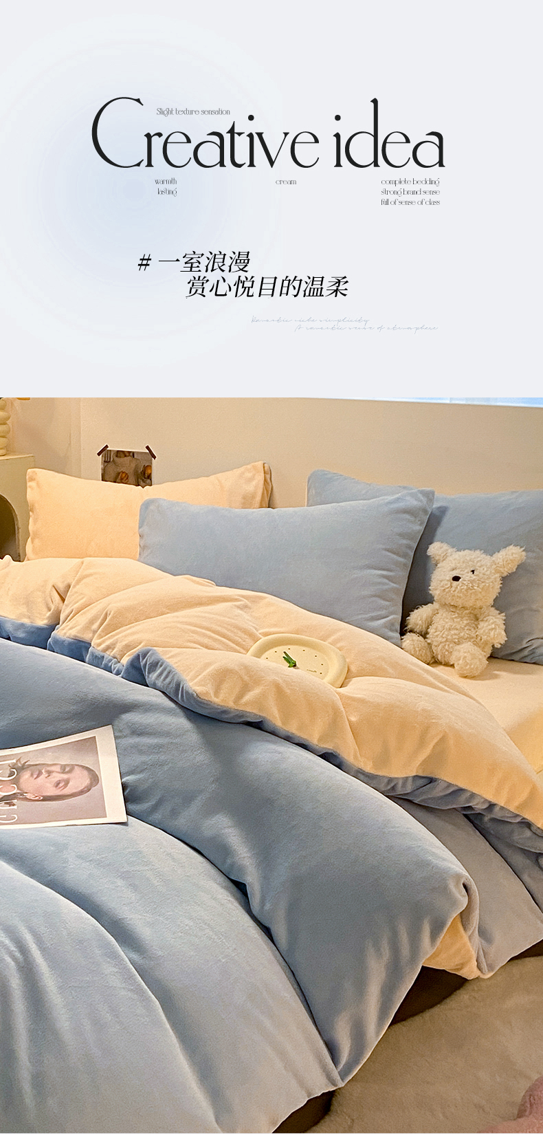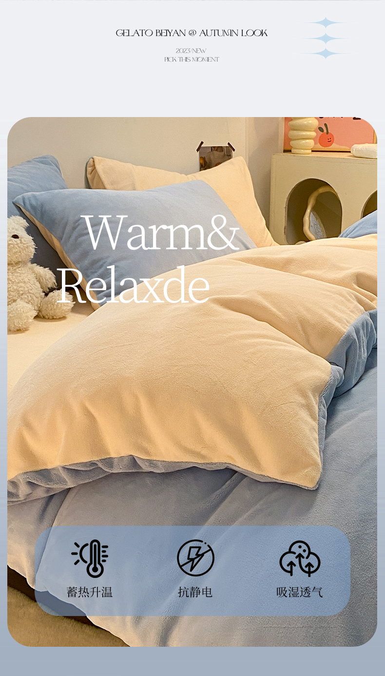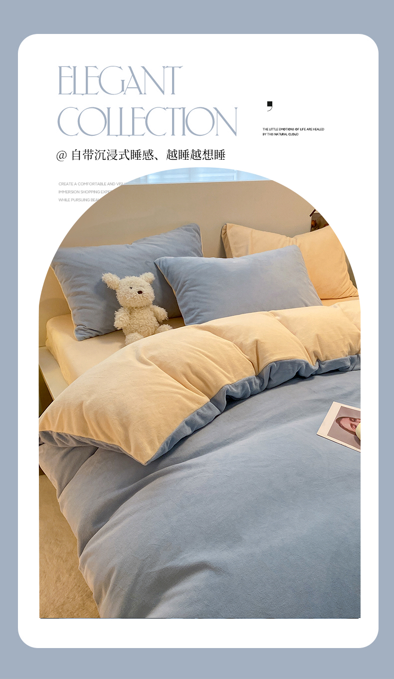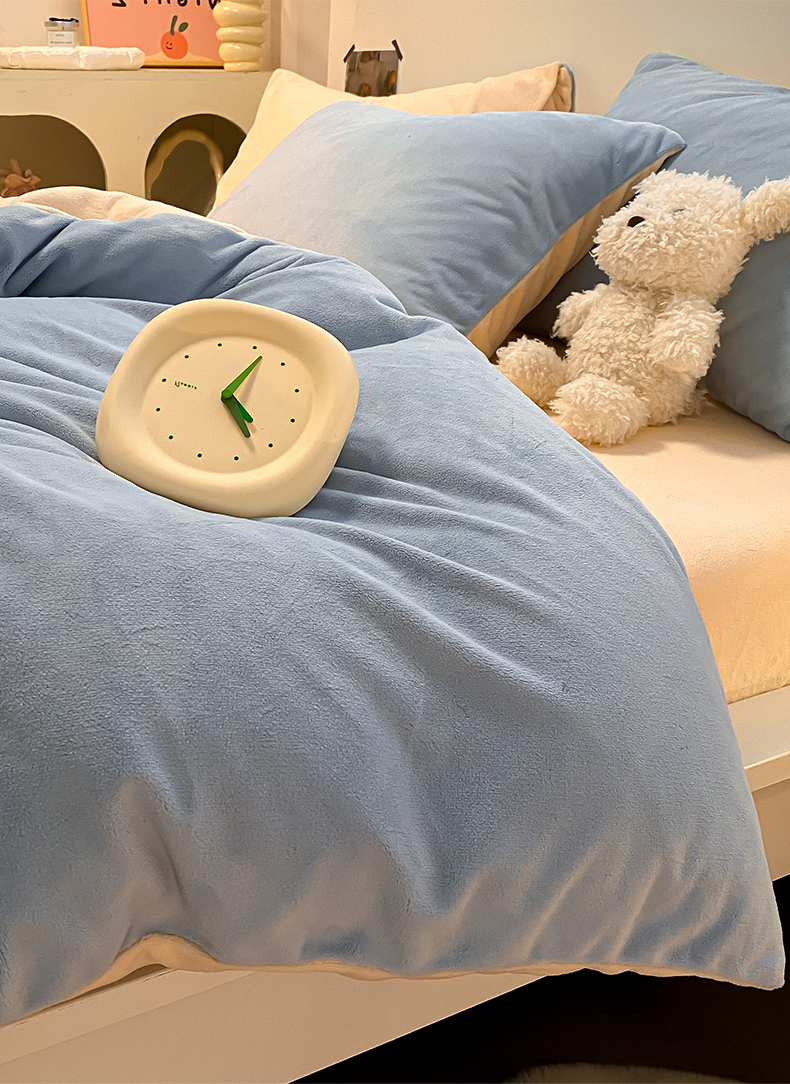 当前位置: 91家纺网 > 商品网购 > 床品套件 > 四件套 > 牛奶绒四件套 > (买家秀爆款不断货)A类母婴级简约纯色双拼牛奶绒四件套提花绒珊瑚绒四件套雪花绒四件套纯色牛奶绒四件套 婴儿蓝+奶昔黄