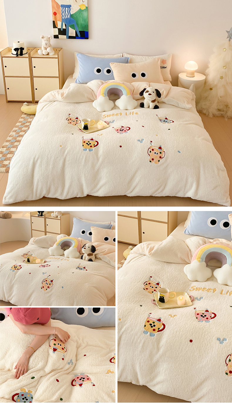 当前位置: 91家纺网 > 商品网购 > 床品套件 > 四件套 > 其它四件套 > 佰亿莱 2025新款泰迪绒蚂蚁绒刺绣四件套 蚂蚁绒杯子
