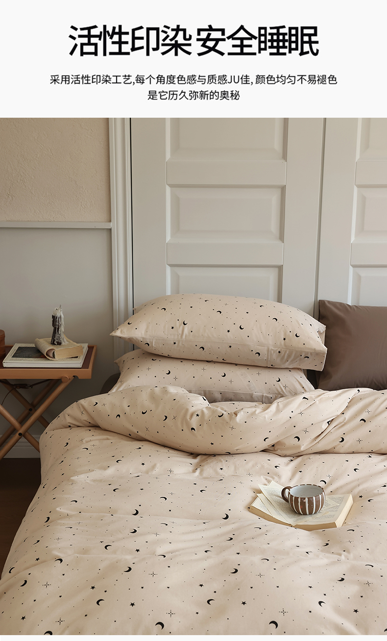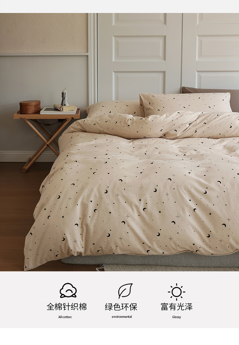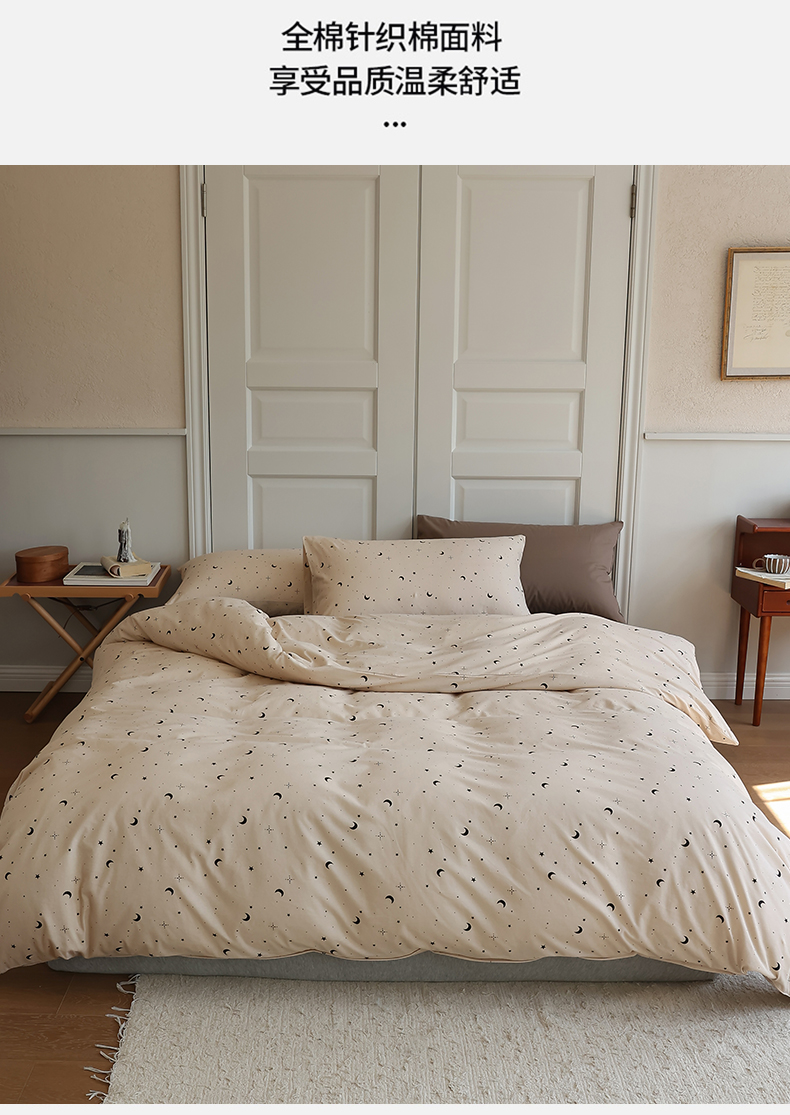 商品名称:绫韵家纺 2025春夏新品母婴A类全棉纯棉针织棉软糯糯小可爱卡通床单款四件套 满天星卡其