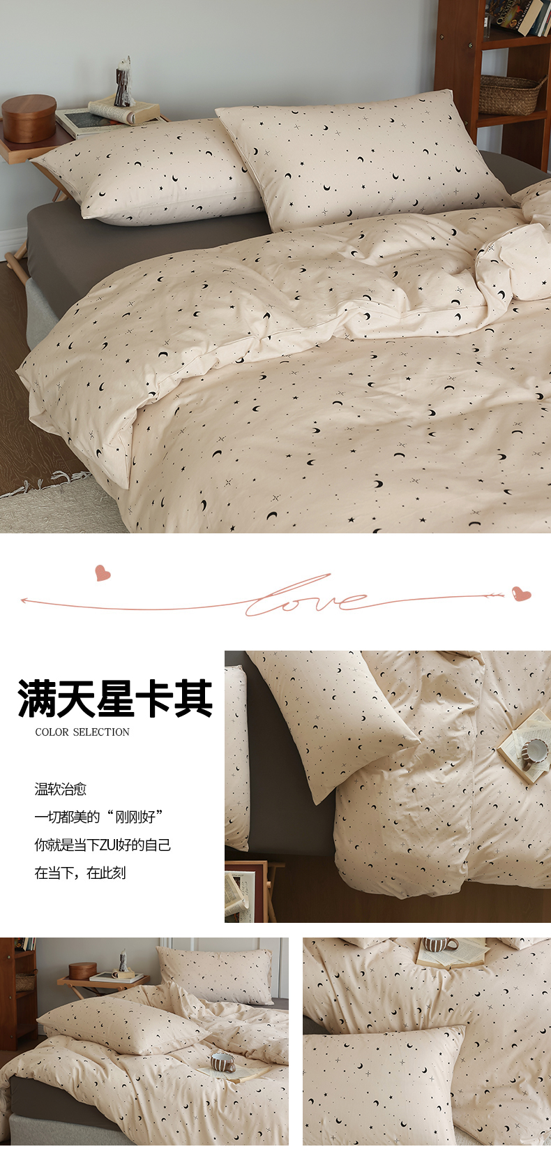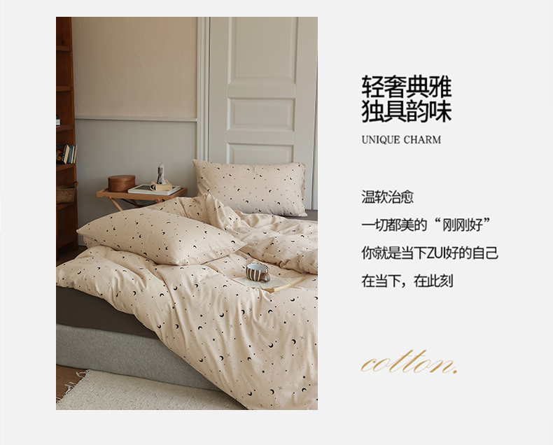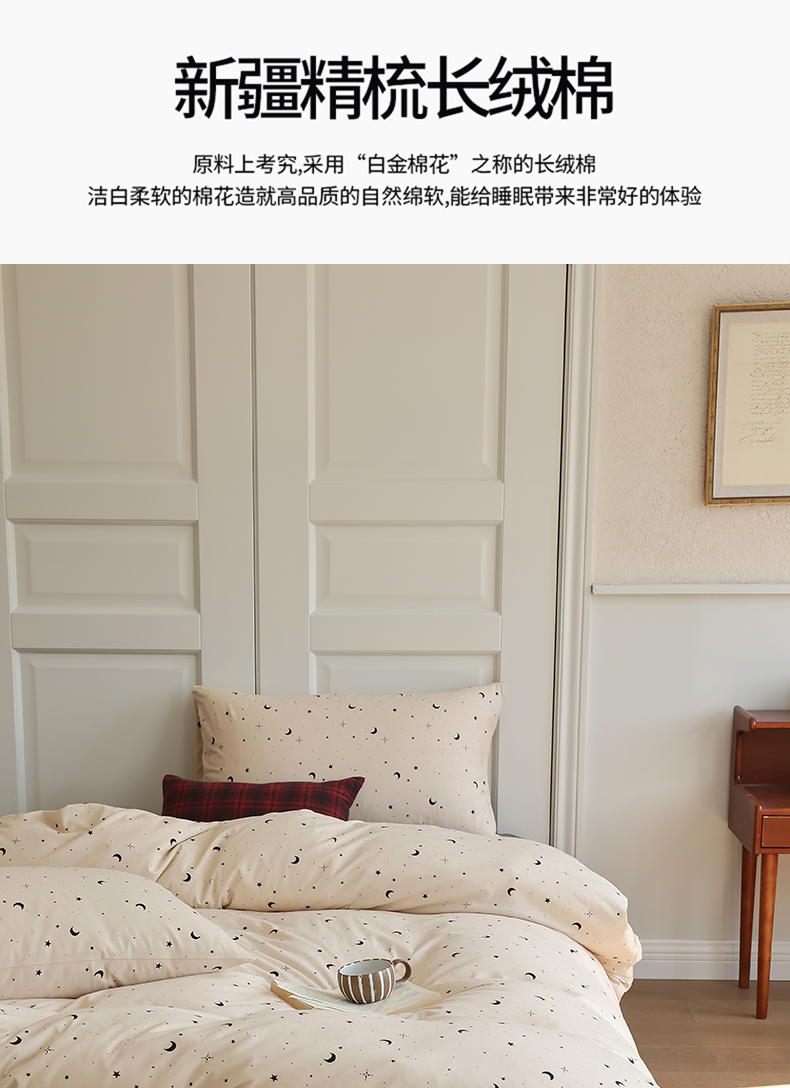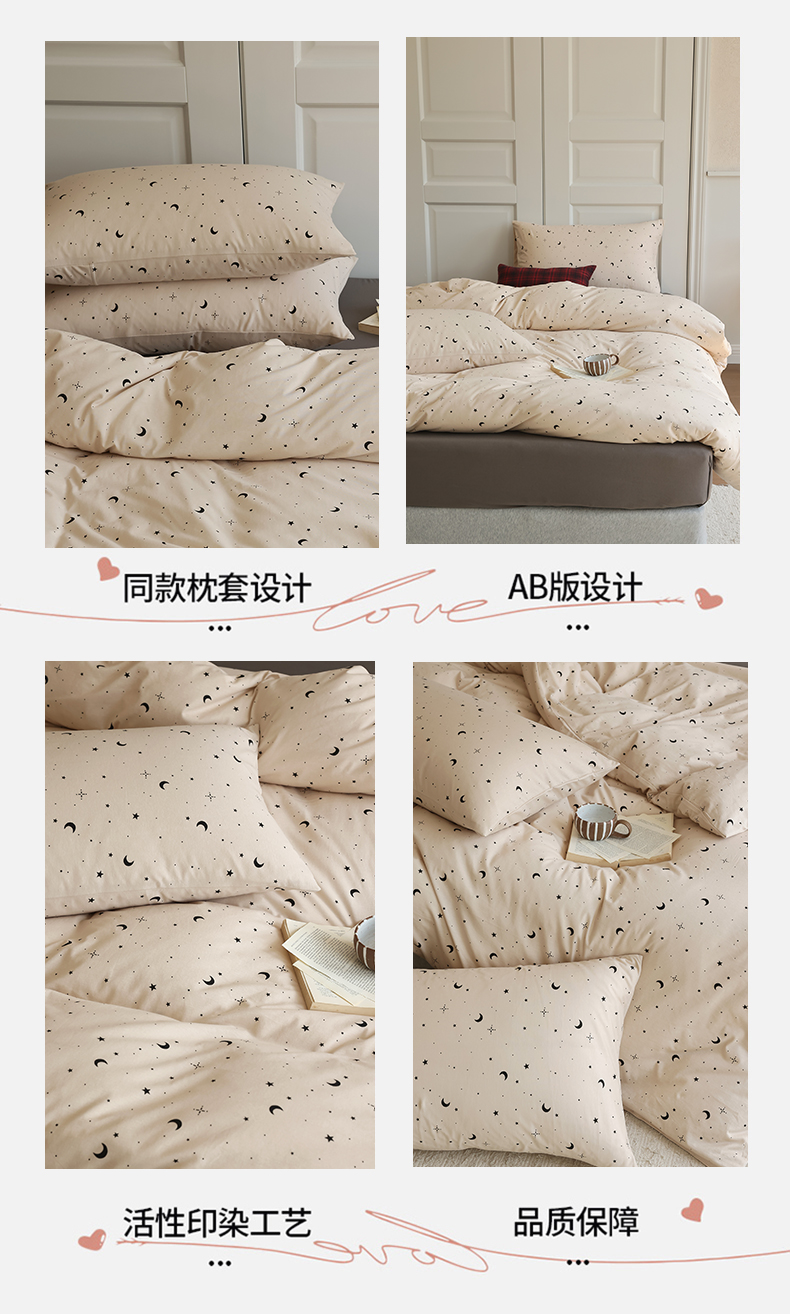 商品名称:绫韵家纺 2025春夏新品母婴A类全棉纯棉针织棉软糯糯小可爱卡通床单款四件套 满天星卡其