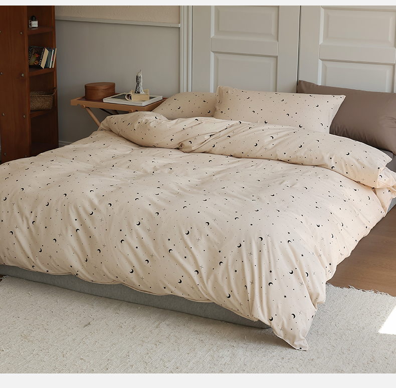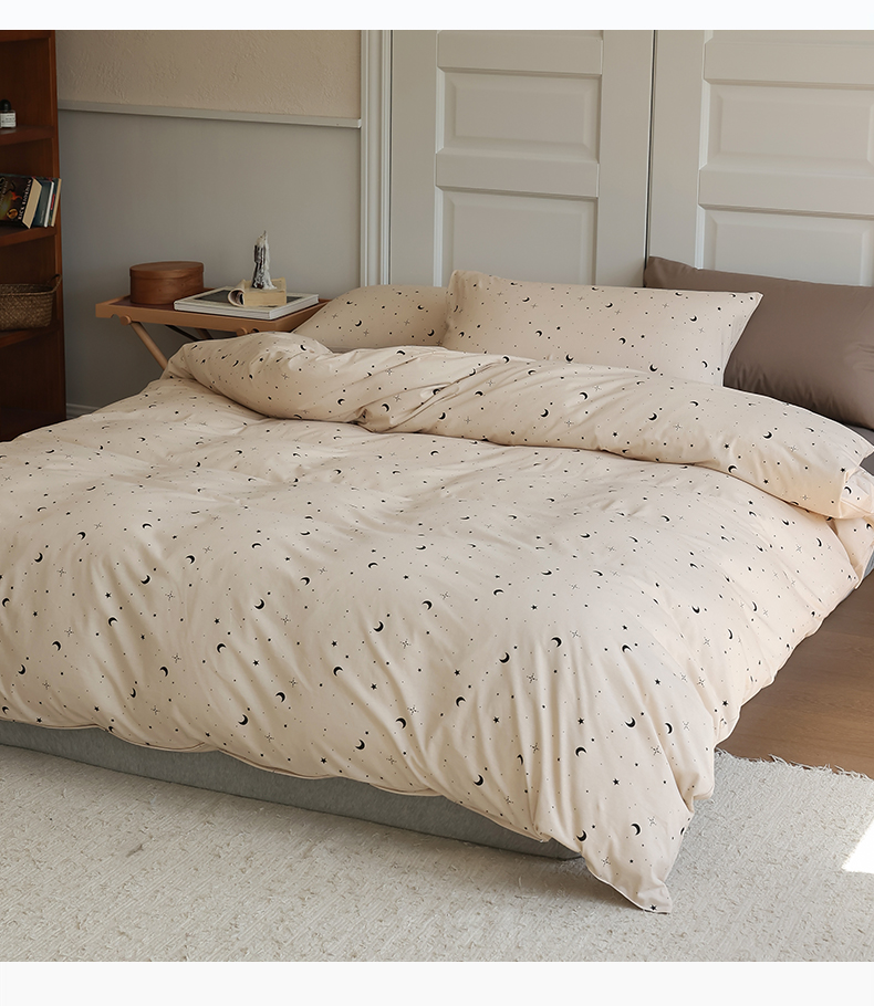 绫韵家纺 2025春夏新品母婴A类全棉纯棉针织棉软糯糯小可爱卡通床单款四件套 满天星卡其