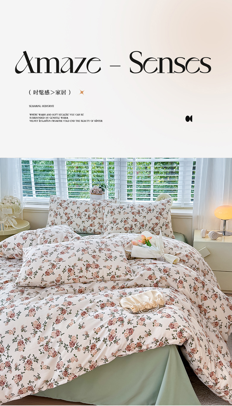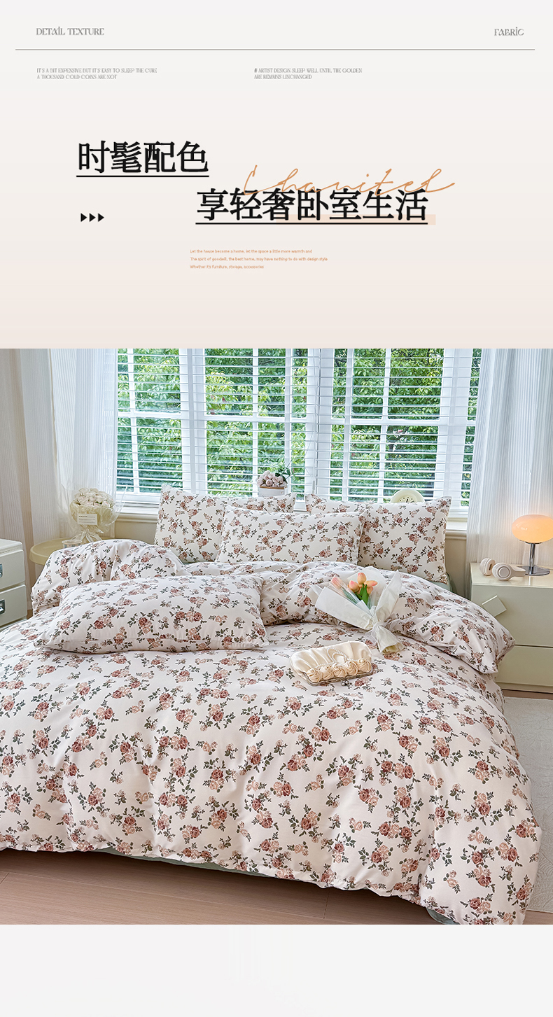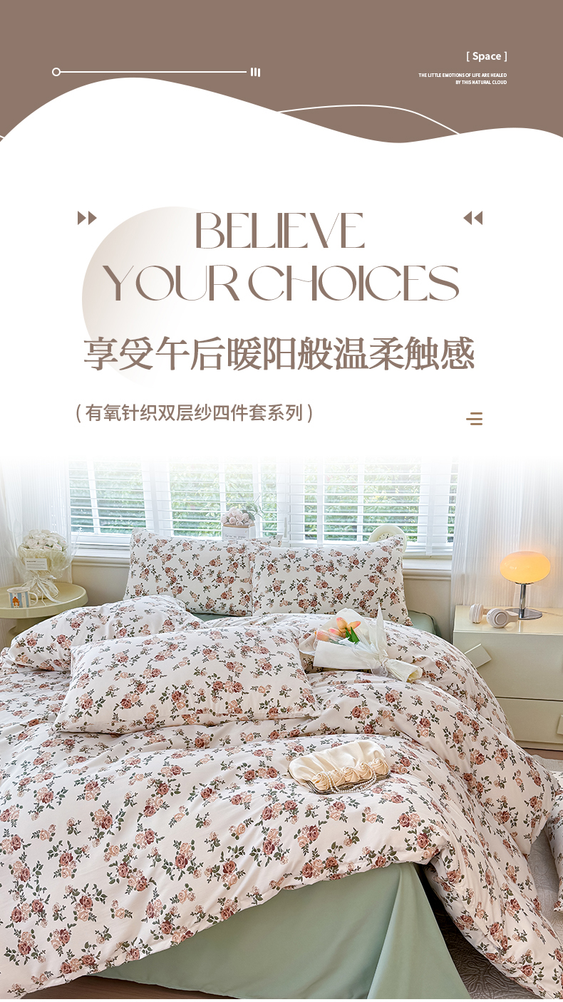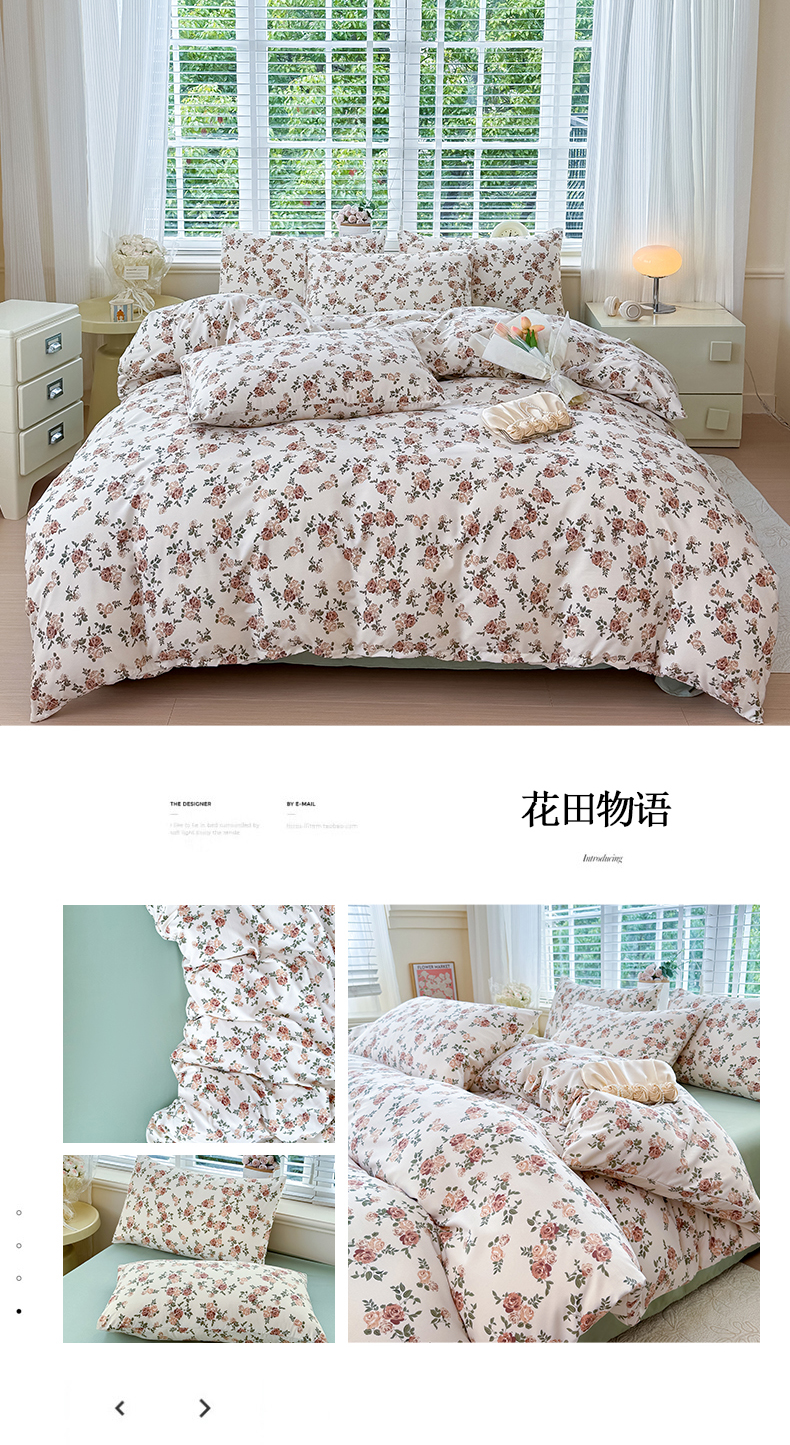 商品名称:金米诺 2024款A类有氧针织棉双层纱加厚四件套 花田物语