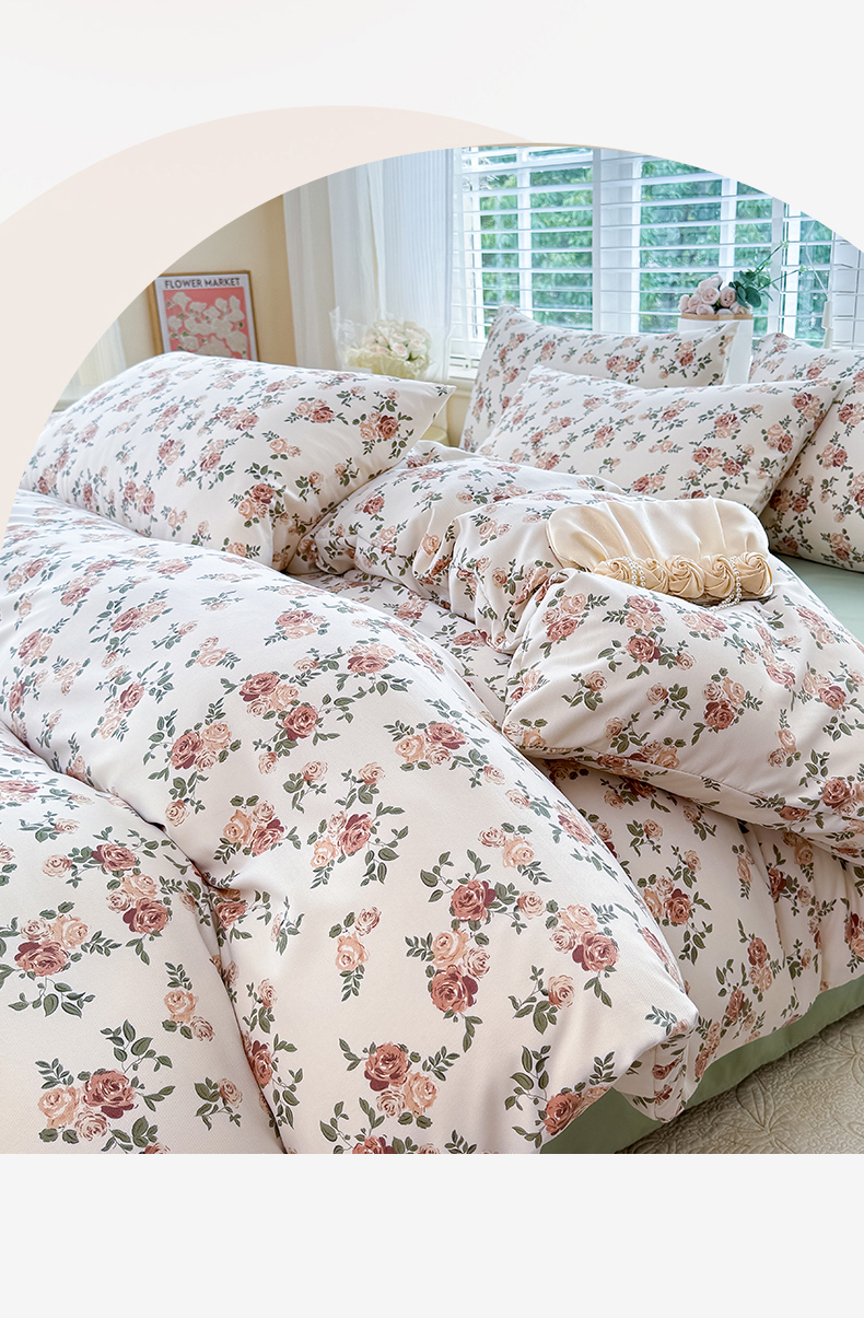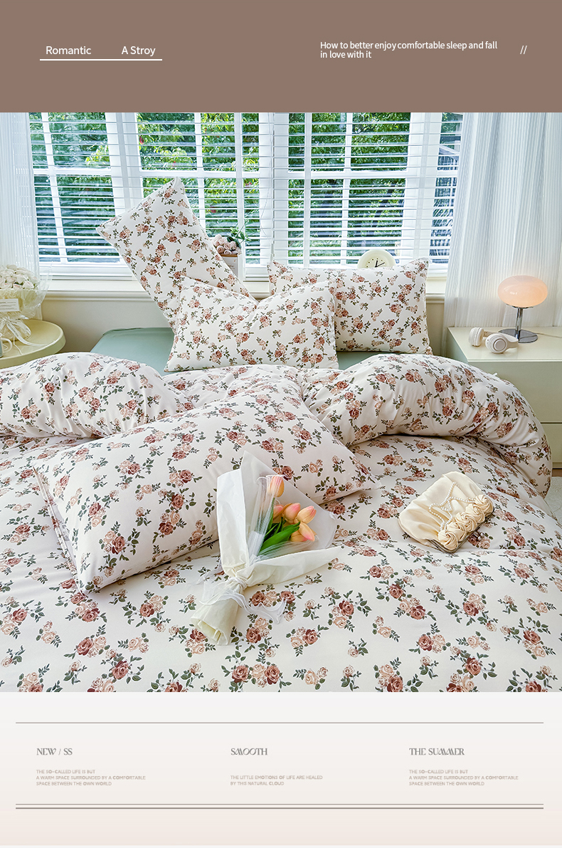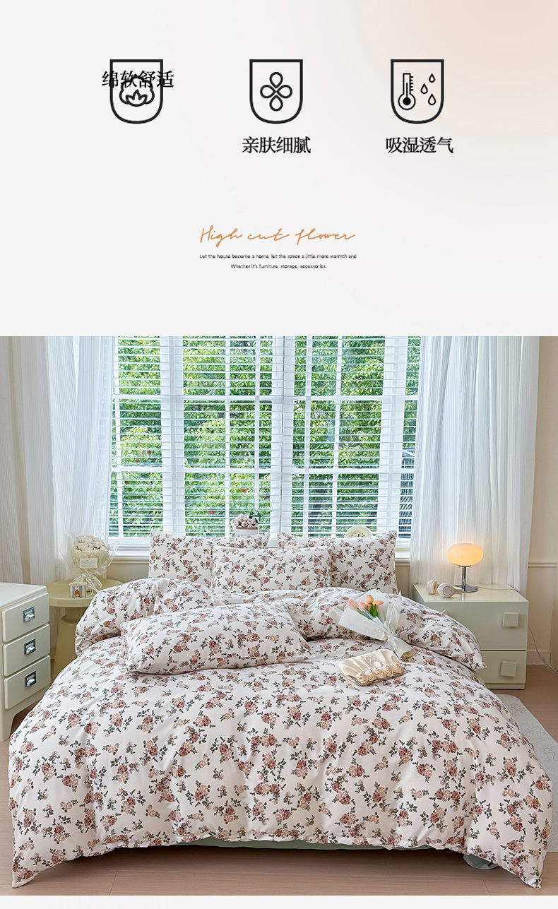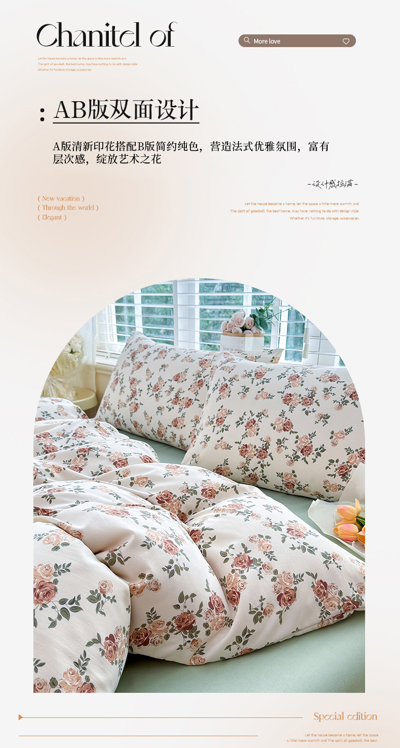 商品名称:金米诺 2024款A类有氧针织棉双层纱加厚四件套 花田物语