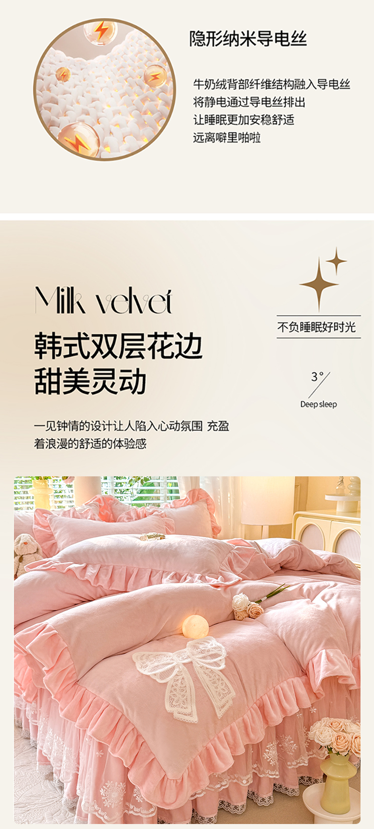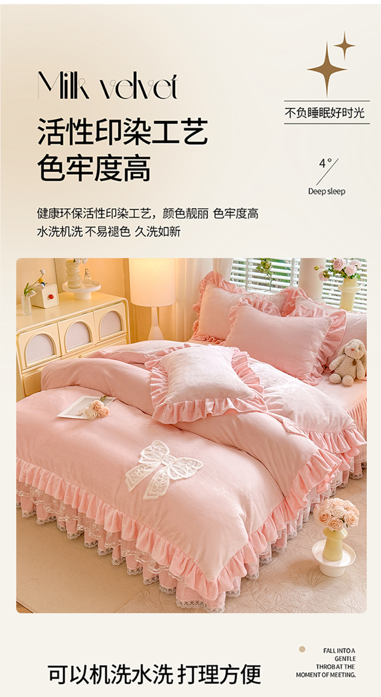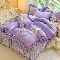 商品名称:漫布云2025秋冬新品230g全消光韩版花边牛奶绒床裙款四件套刺绣蕾丝花边床罩款四件套 甜心—梦幻紫
