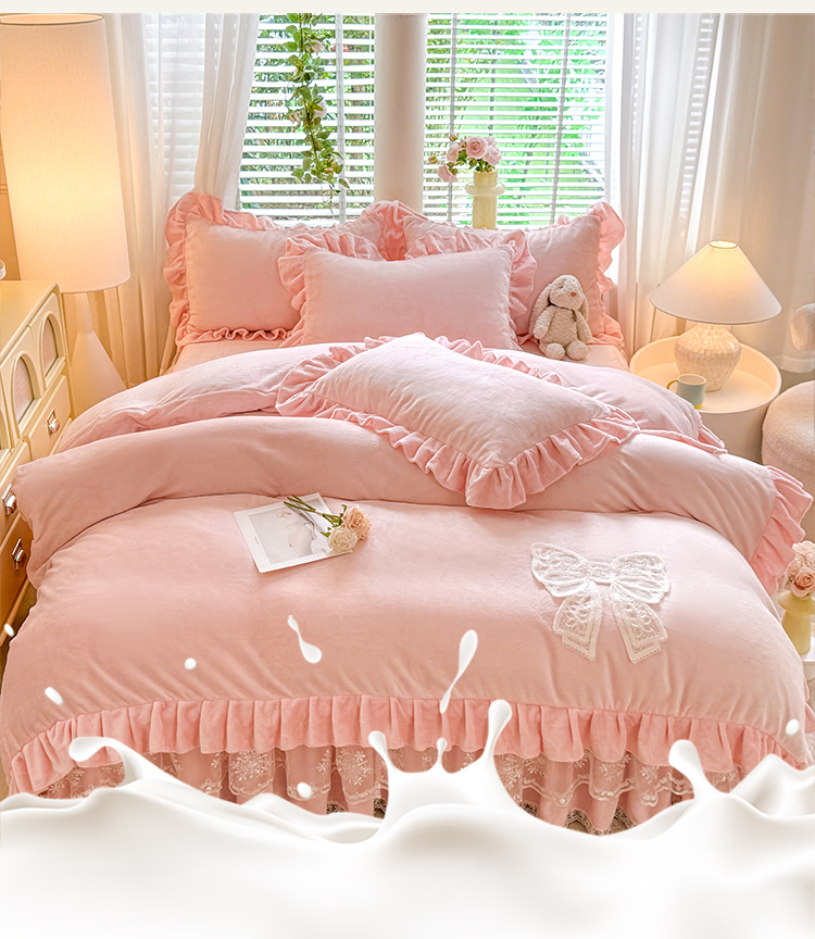 漫布云2025秋冬新品230g全消光韩版花边牛奶绒床裙款四件套刺绣蕾丝花边床罩款四件套 甜心—梦幻紫