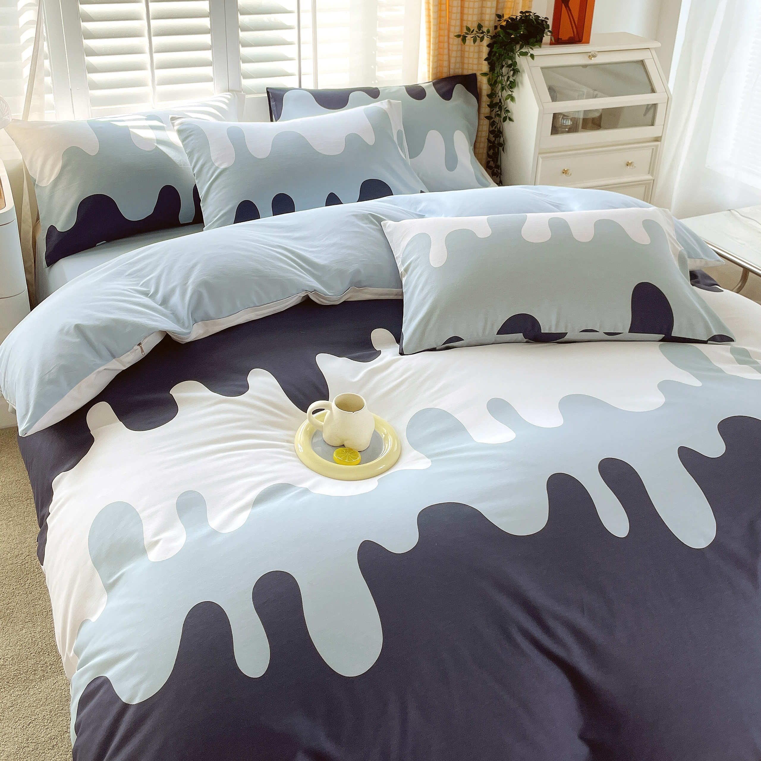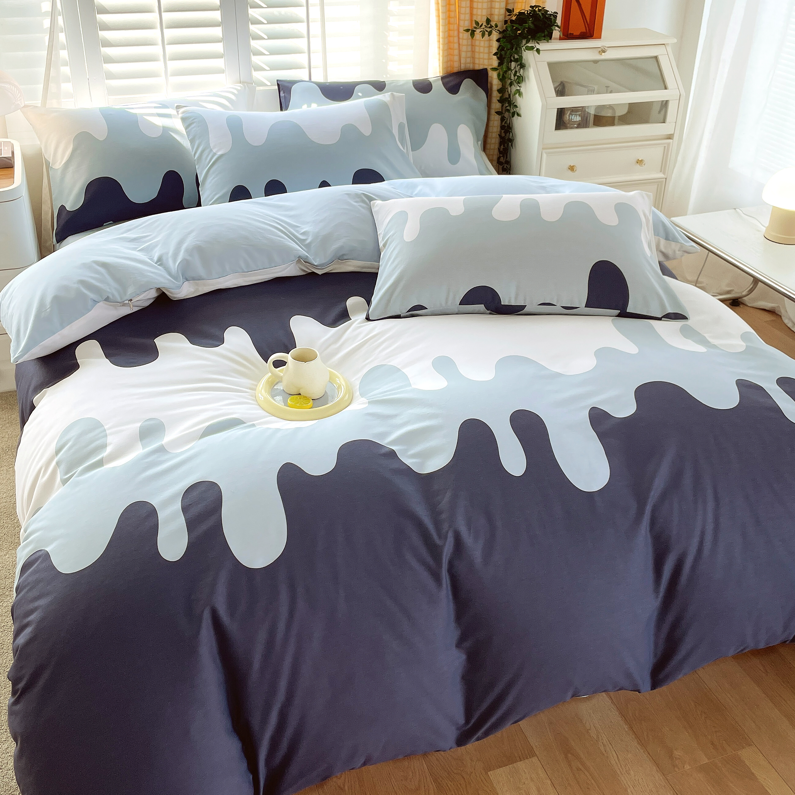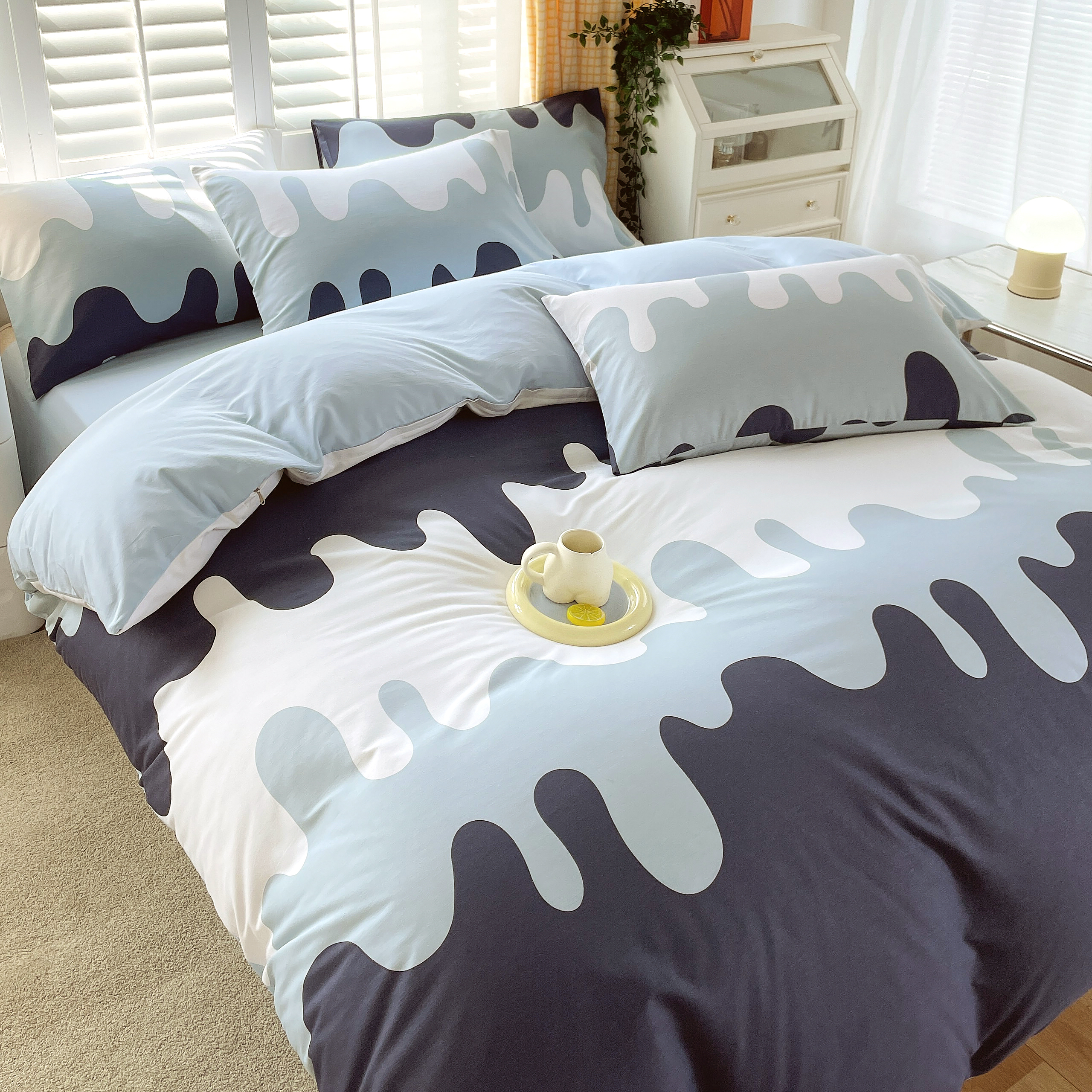 2023-2024新款13070全棉好卖花型套件系列-单被套 奶油蓝