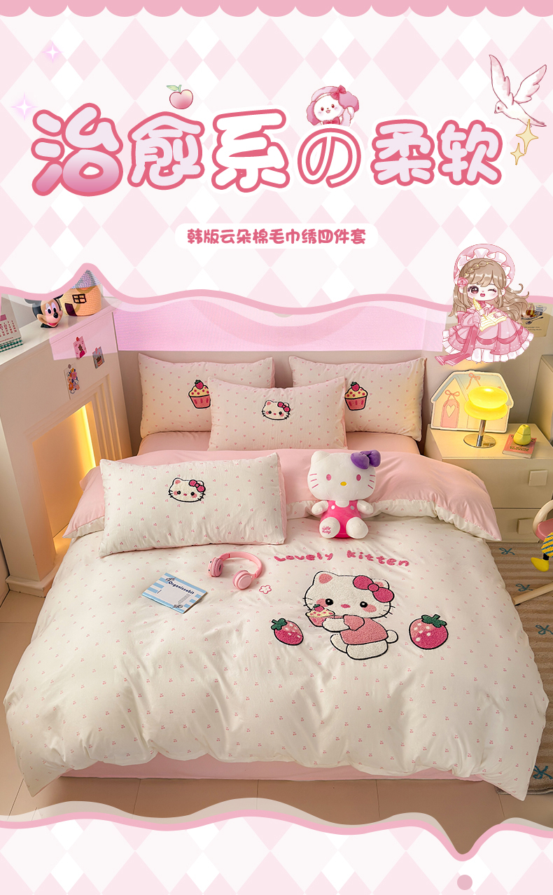 当前位置: 91家纺网 > 商品网购 > 床品套件 > 四件套 > 其它四件套 > 2025新款糯糯棉(110克)大版卡通毛巾绣四件套(提供买家绣)-场景二 kt-莓烦恼