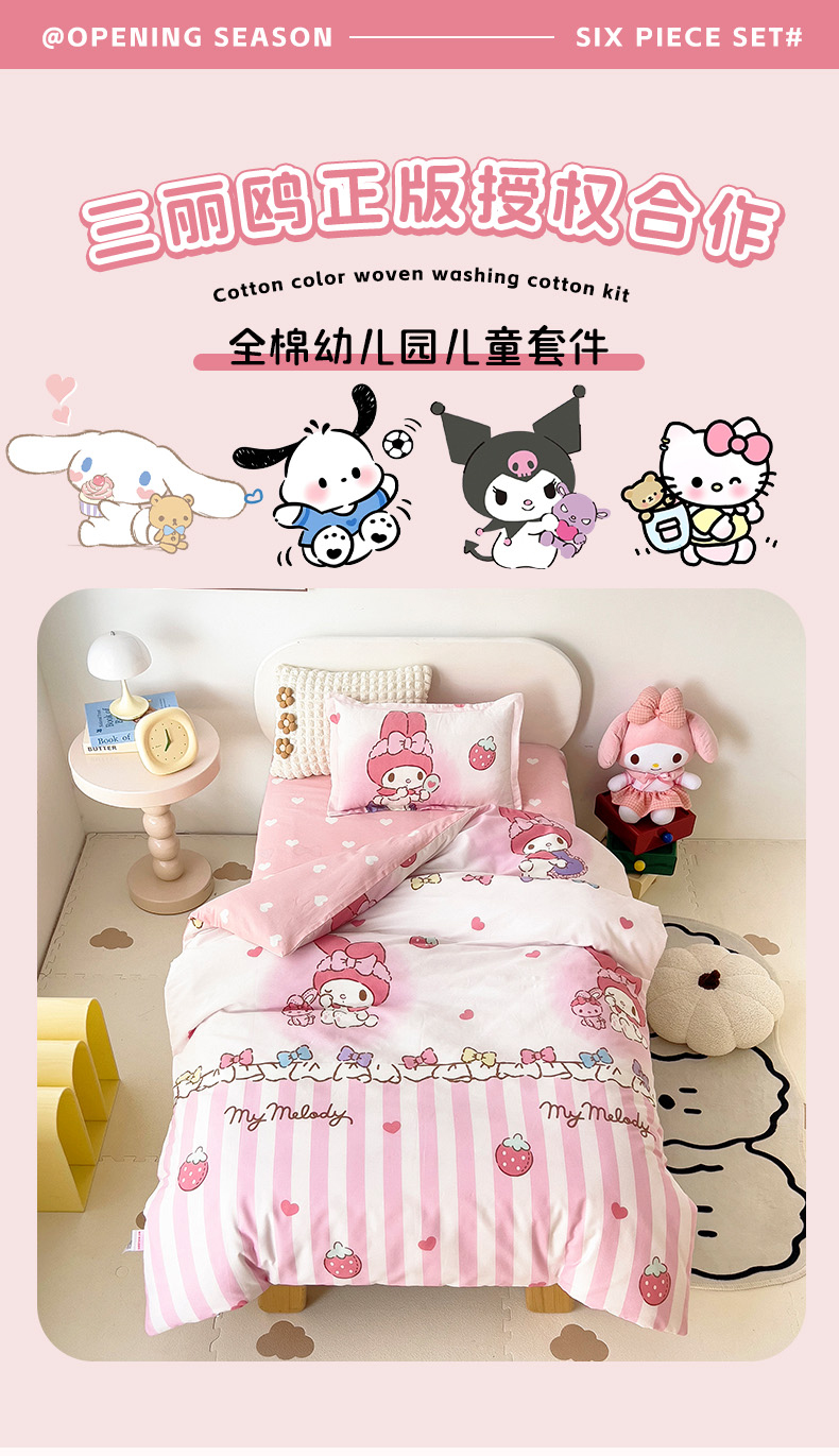 当前位置: 91家纺网 > 商品网购 > 床品套件 > 多件套 > 多件套 > 芭伯妮 2025新款全棉三丽鸥幼儿园三件套 儿童宝宝午睡套件 含芯六件套 洋娃娃