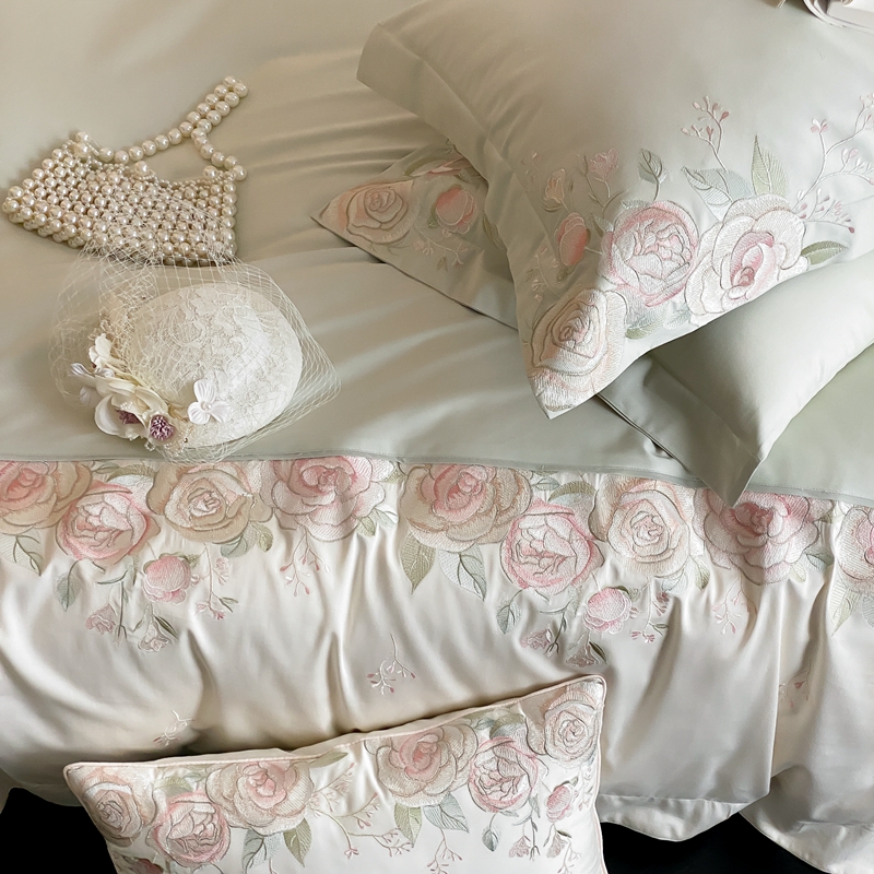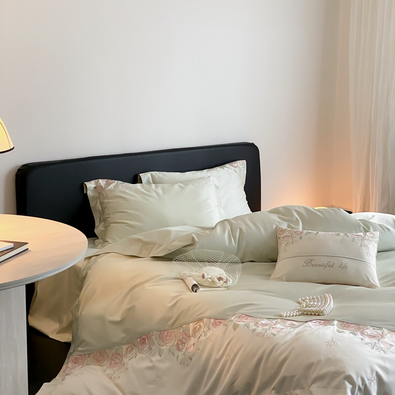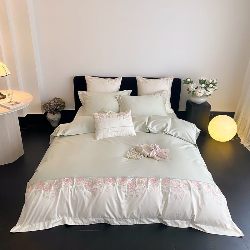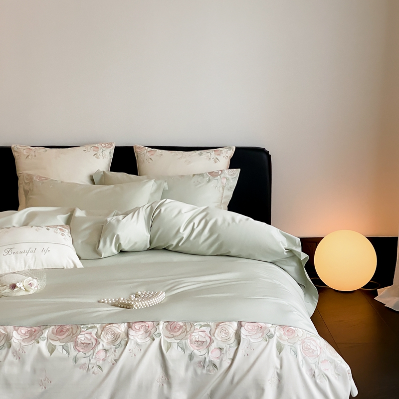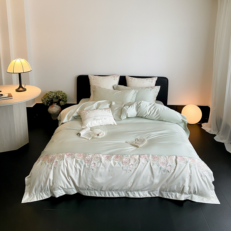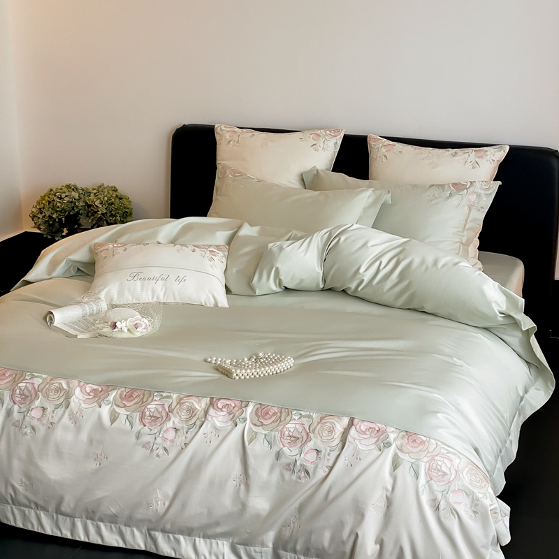 2025新款100支全棉四件套-玫瑰物语 绿色