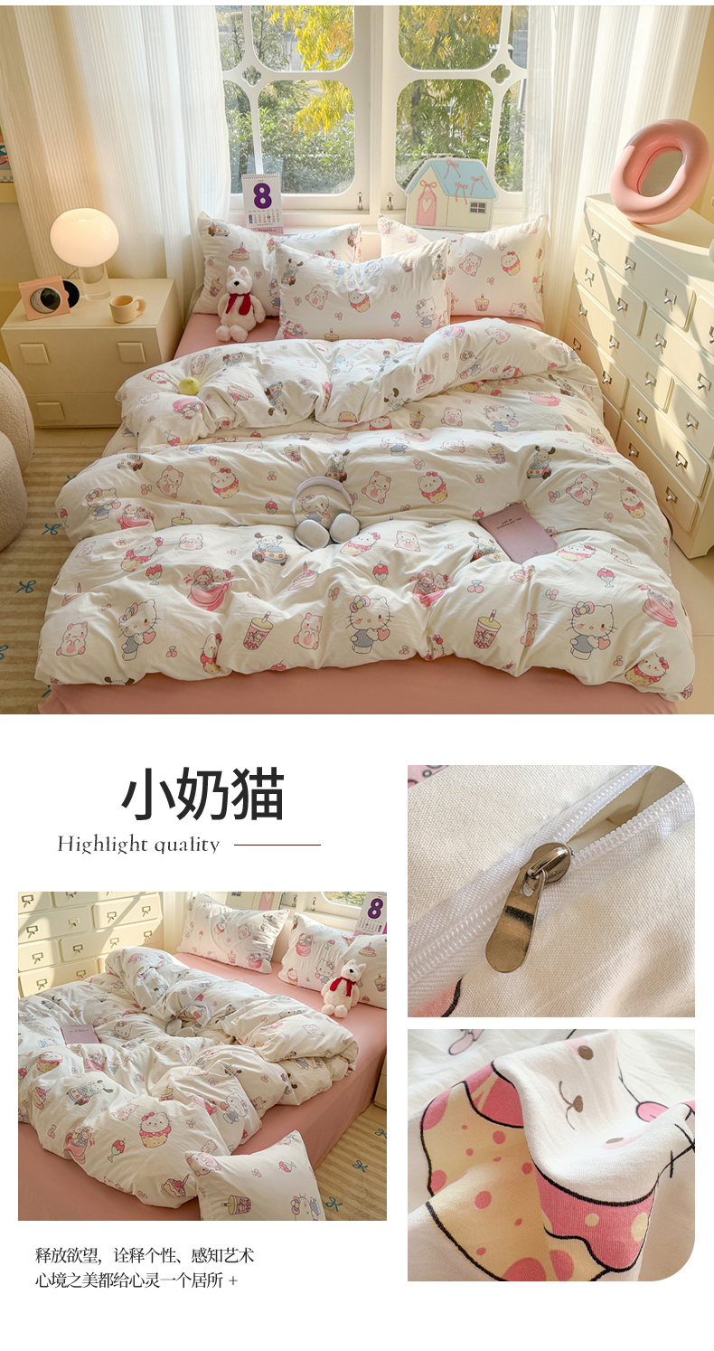 当前位置: 91家纺网 > 商品网购 > 床品套件 > 四件套 > 水洗棉四件套 > 温眠 2025新款亲肤柔软卡通印花水洗棉四件套 小奶猫