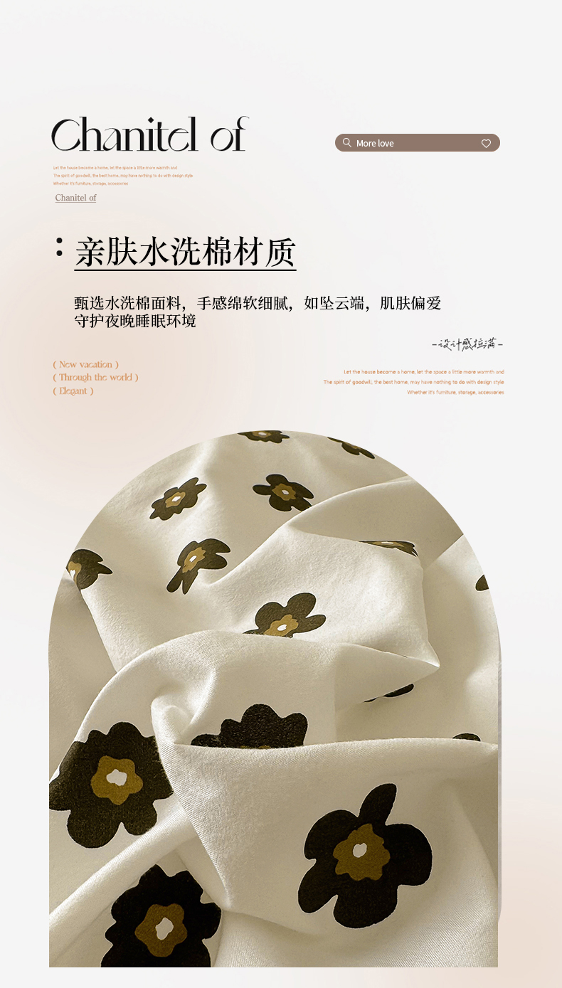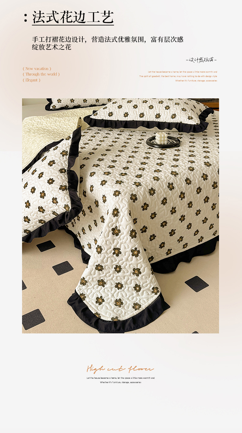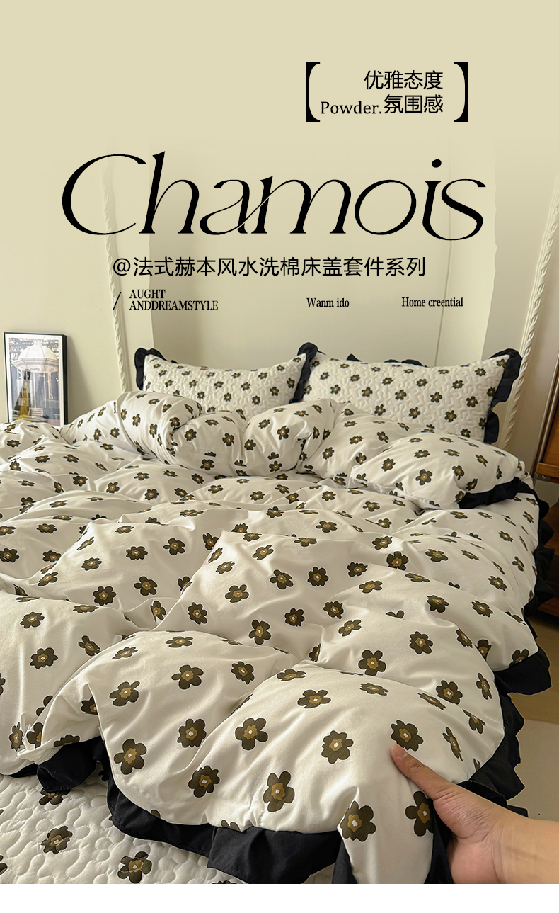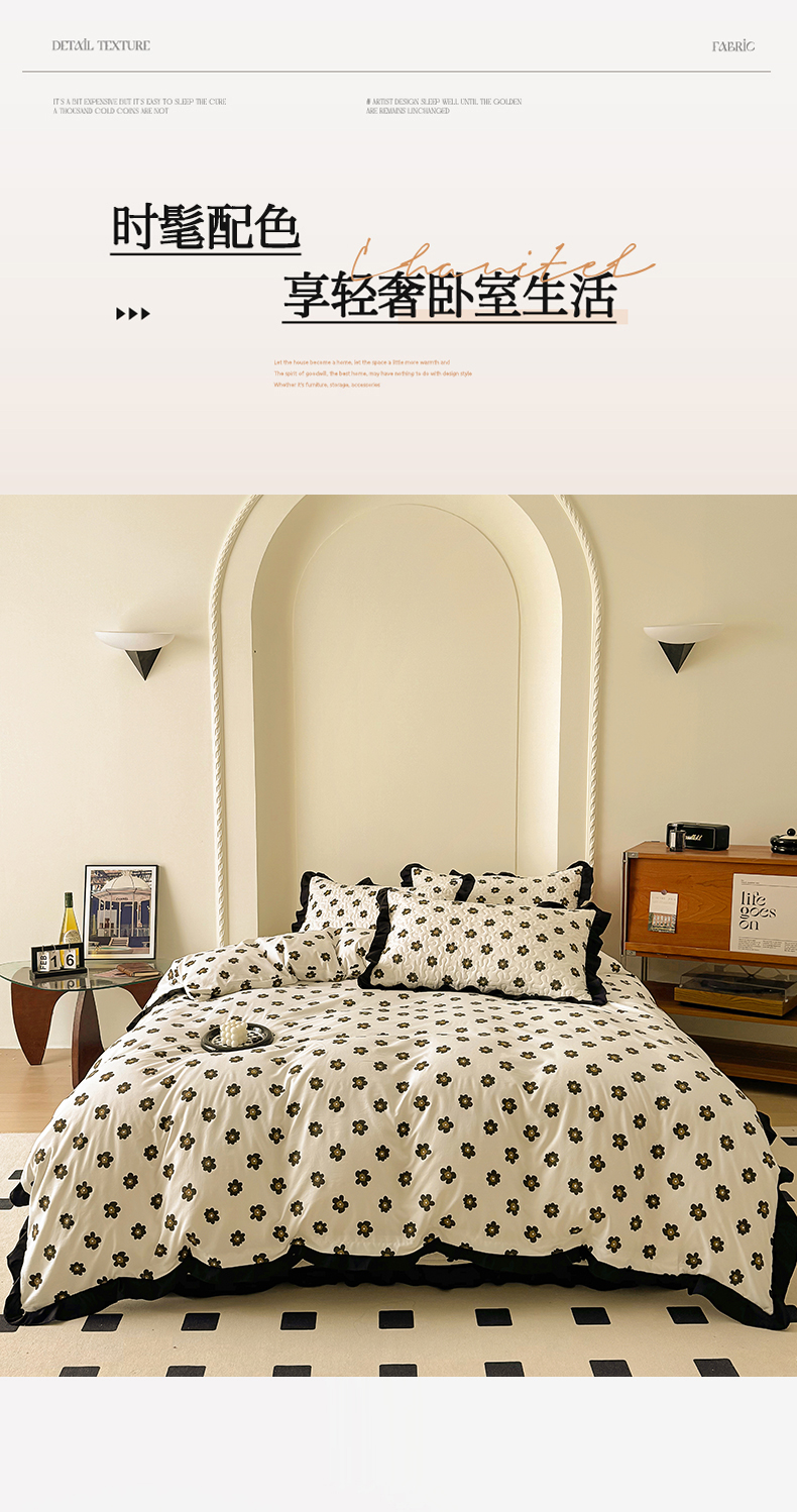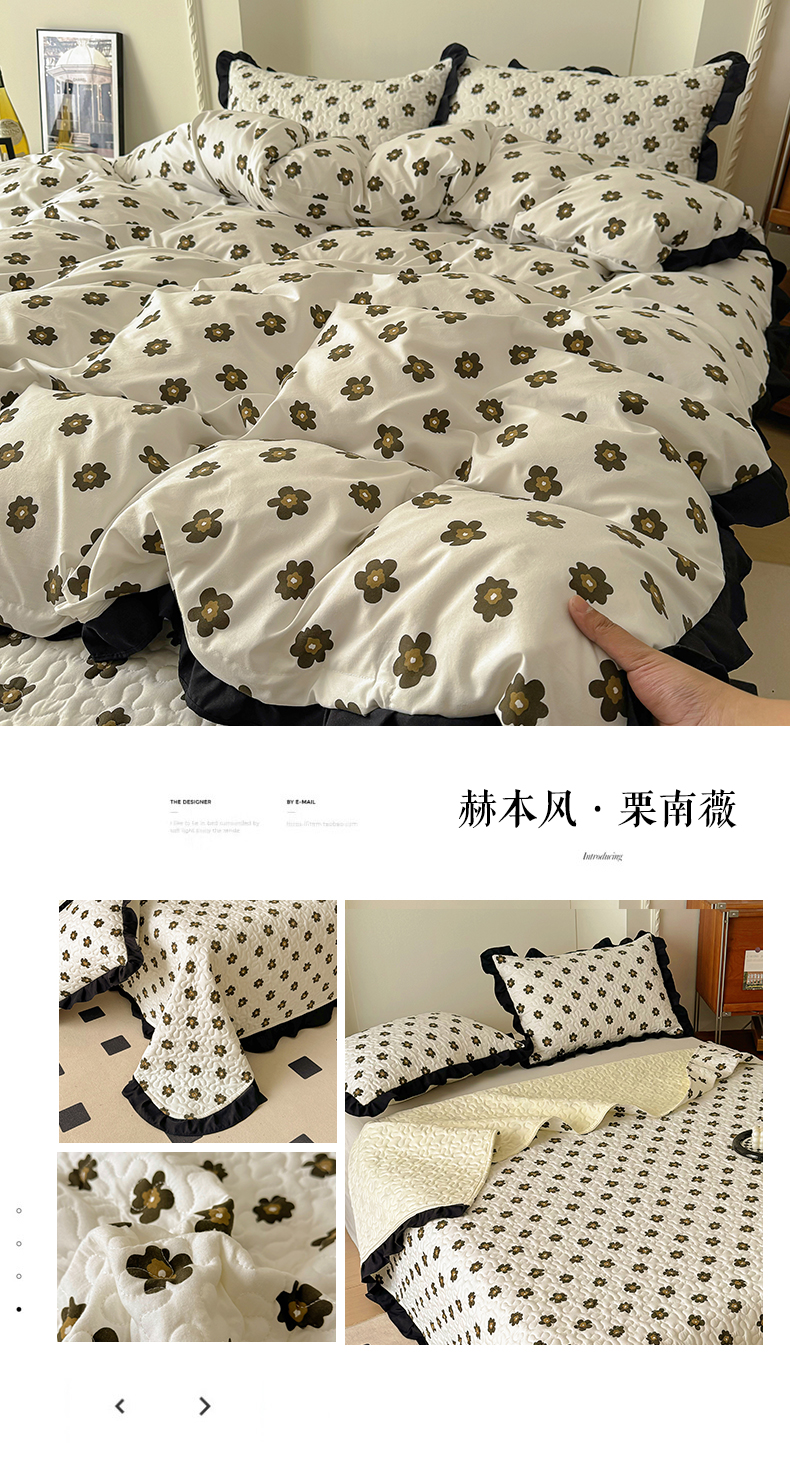 • 91家纺网 家纺一手货源 找家纺 美梦家纺 2025新款法式赫本风水洗棉床盖四件套系列 赫本风·栗南薇