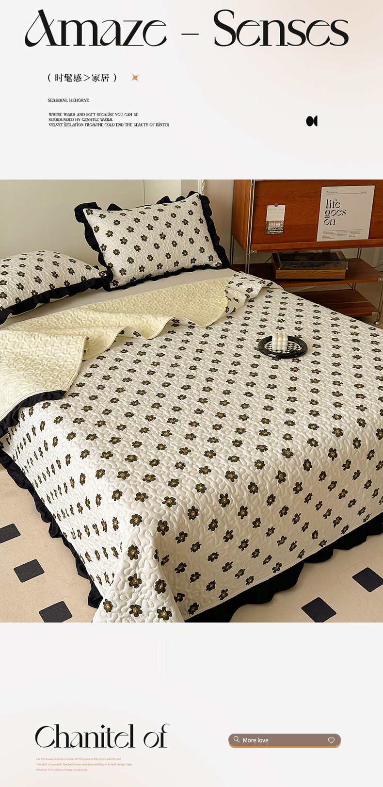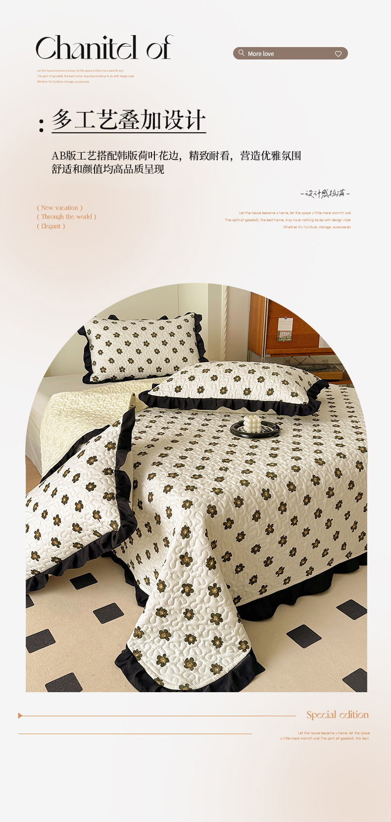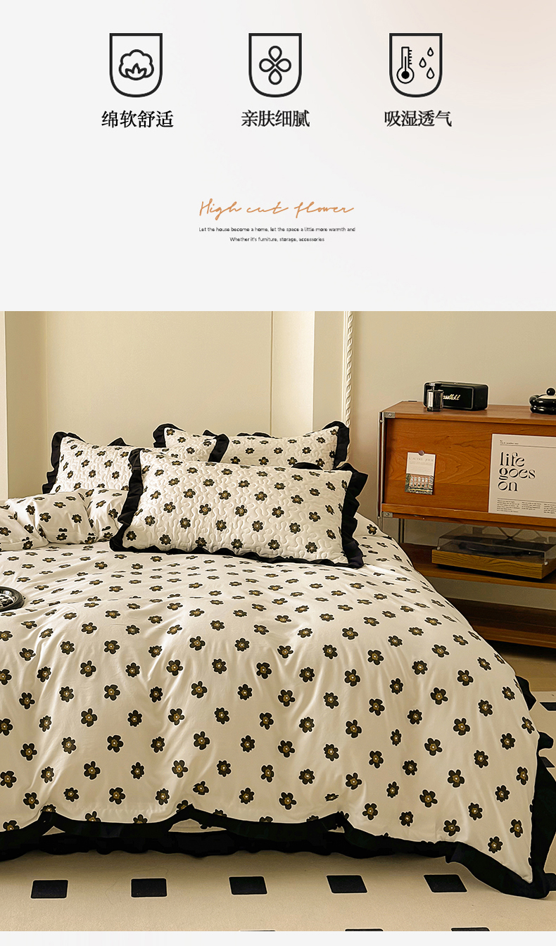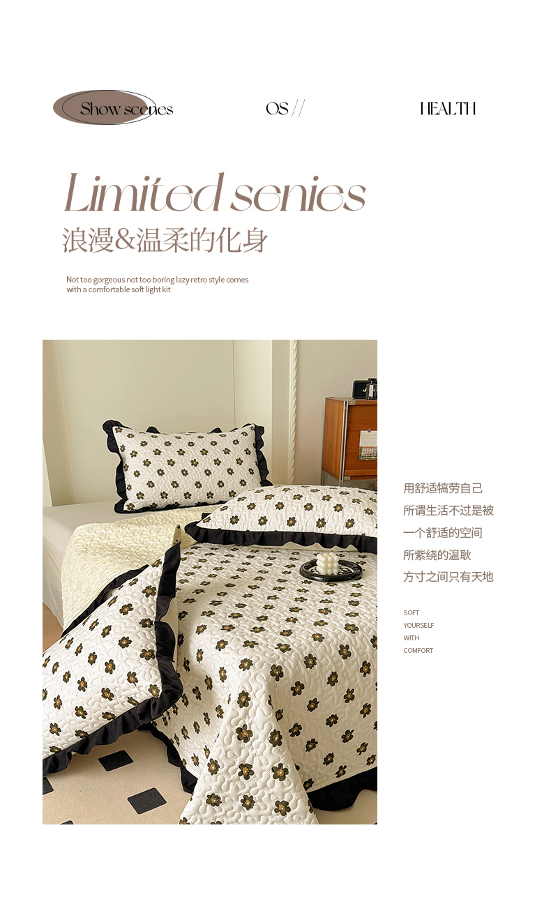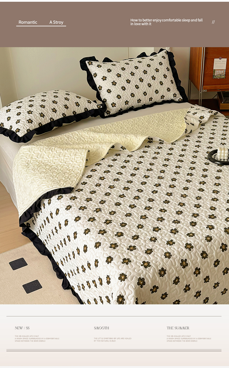 • 91家纺网 家纺一手货源 找家纺 美梦家纺 2025新款法式赫本风水洗棉床盖四件套系列 赫本风·栗南薇